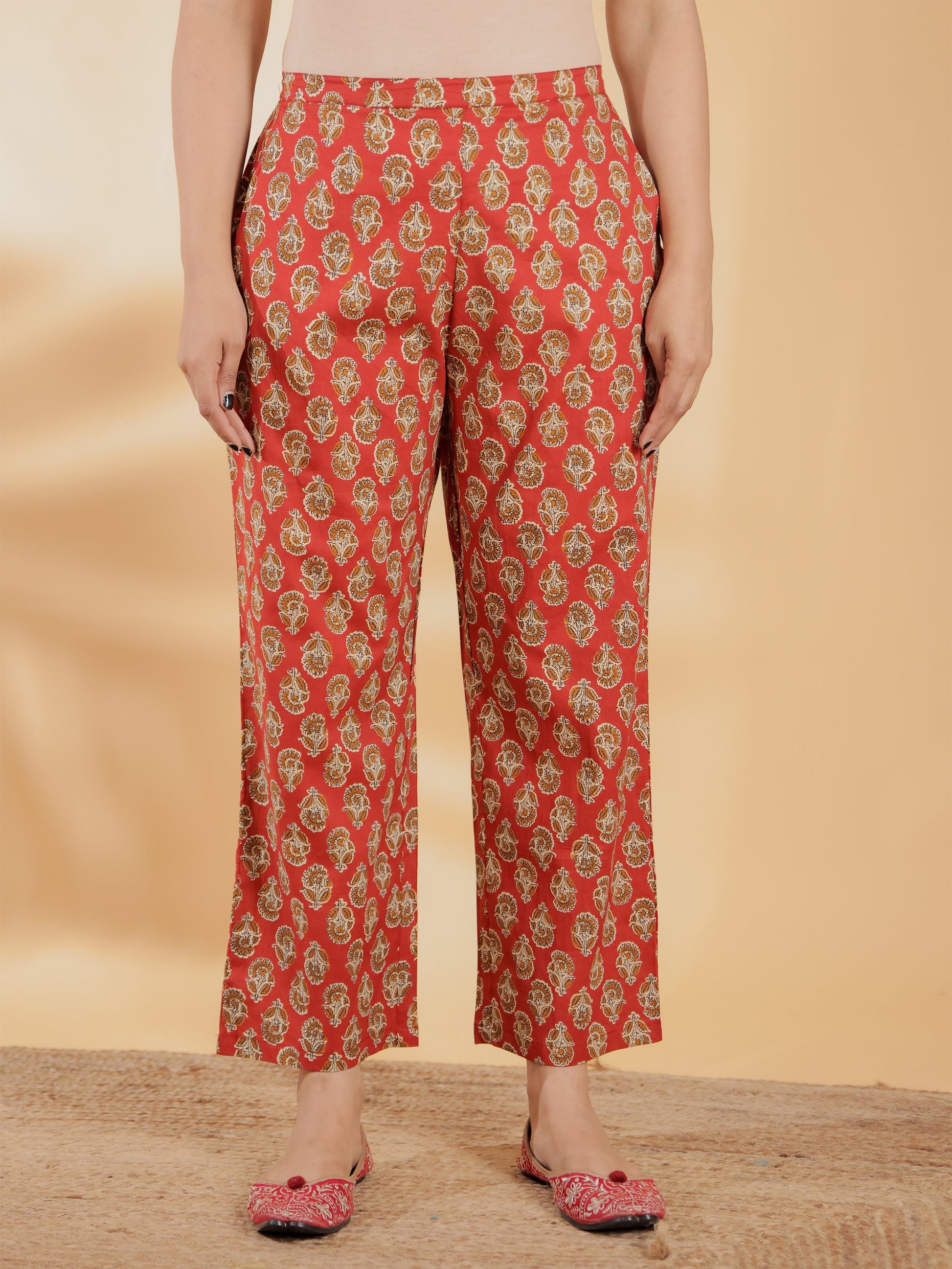 Upgrade your wardrobe with these Red bottoms made from lightweight Soft Cotton. The Floral accents bring subtle charm, while pockets make them practical for all-day wear. Perfect for pairing with ethnic kurtas or western blouses, these bottoms are a go-to choice for comfort and style. Easy care ensures they stay fresh season after season.