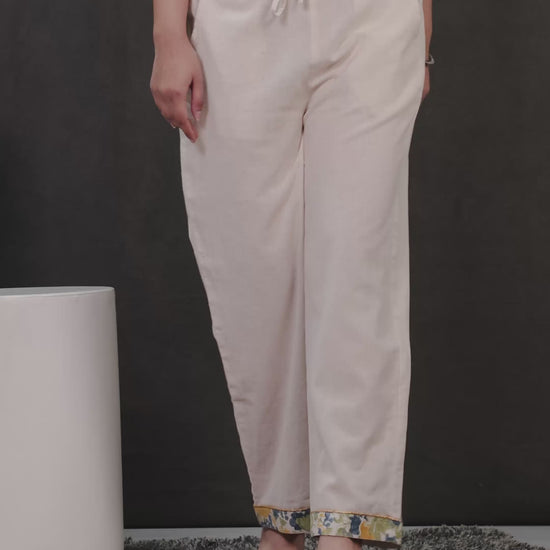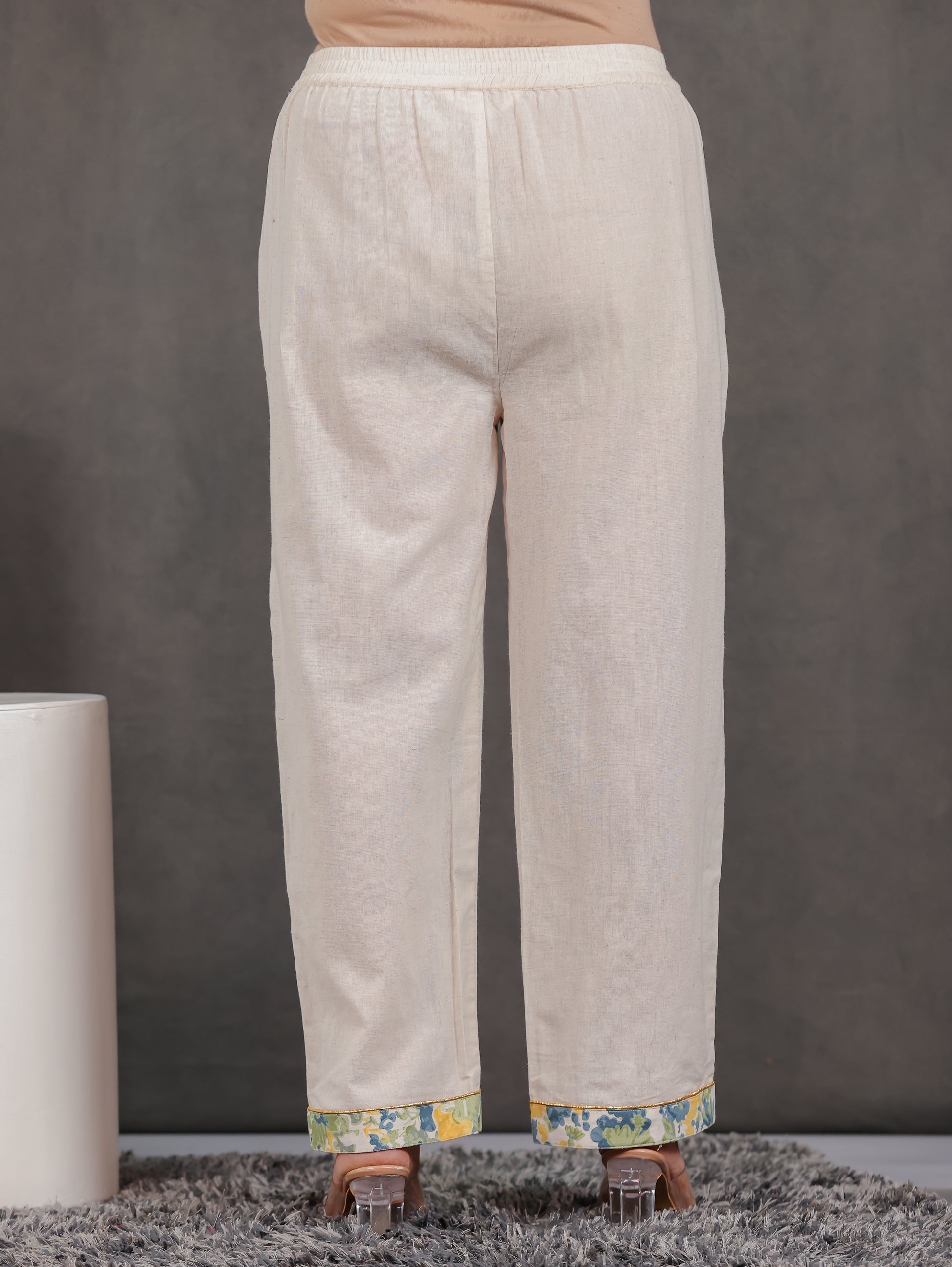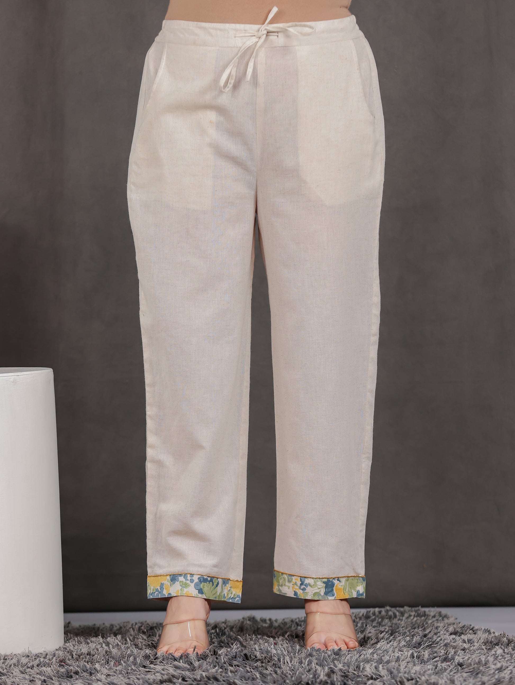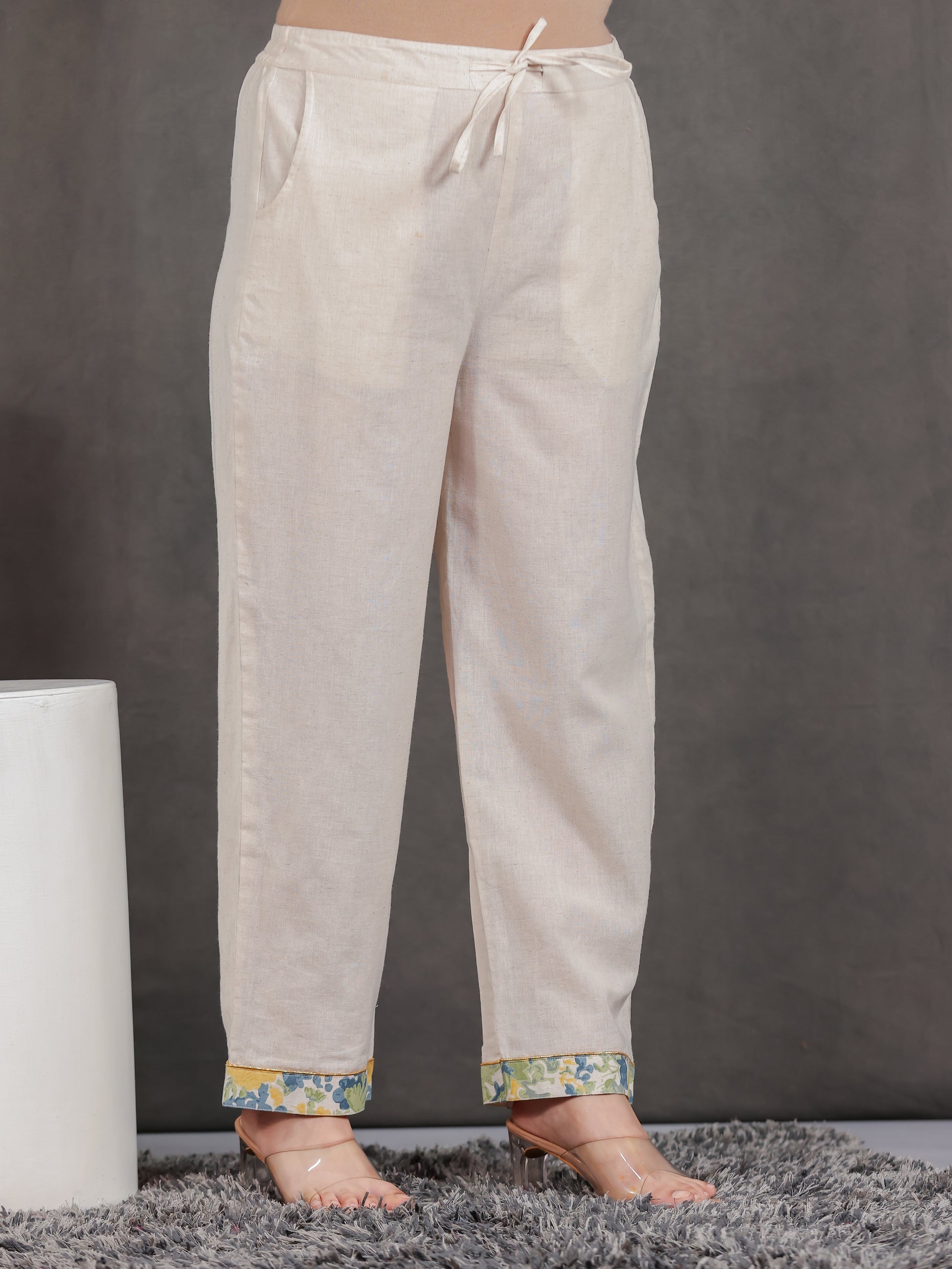 These Off White trouser crafted from breathable Linen Cotton combine comfort and style. The Solid pattern adds a modern twist, while pockets make them practical for daily wear. Ideal for casual outings or workdays, they pair effortlessly with kurtas, tops, or tunics. Keep them looking fresh with minimal care and enjoy their all-day ease.