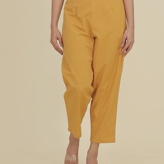 Soft Cotton Solid Yellow Tapered Trousers