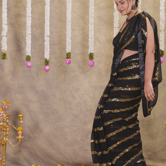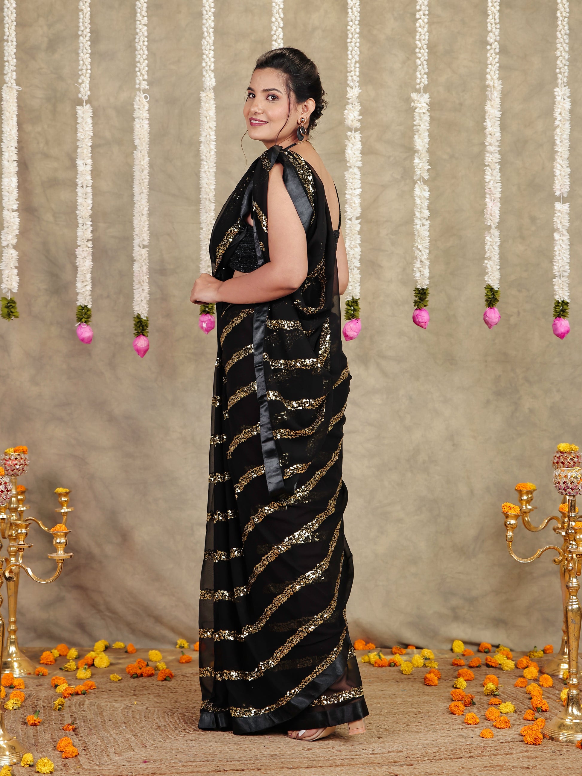 Embroidered Sequins Embroidered Georgette Solid Black Saree