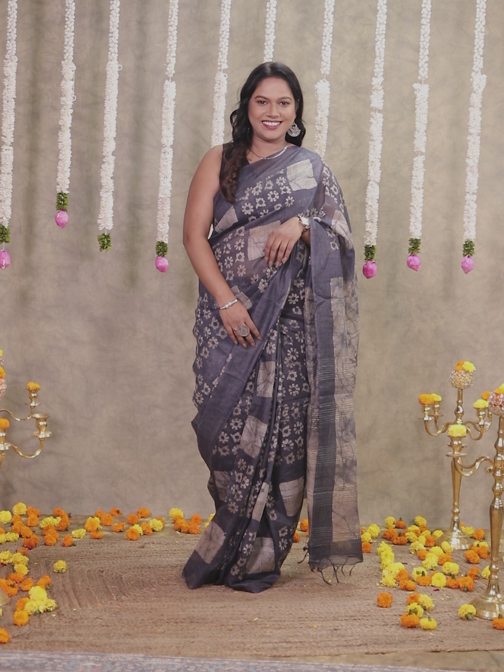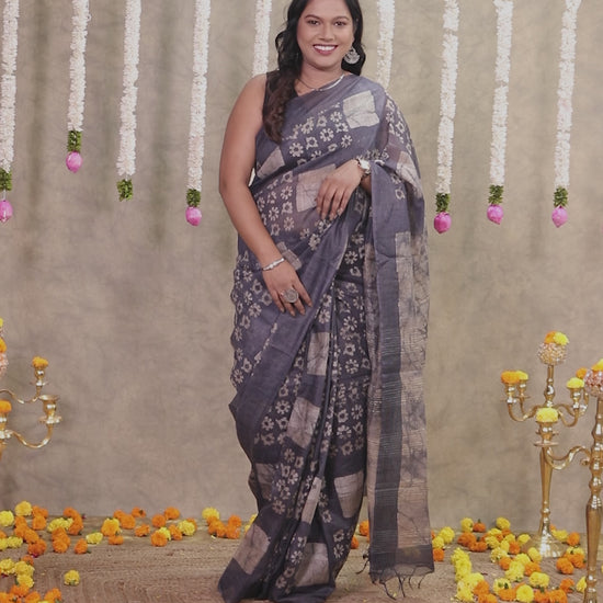 Chanderi Batik Grey Saree