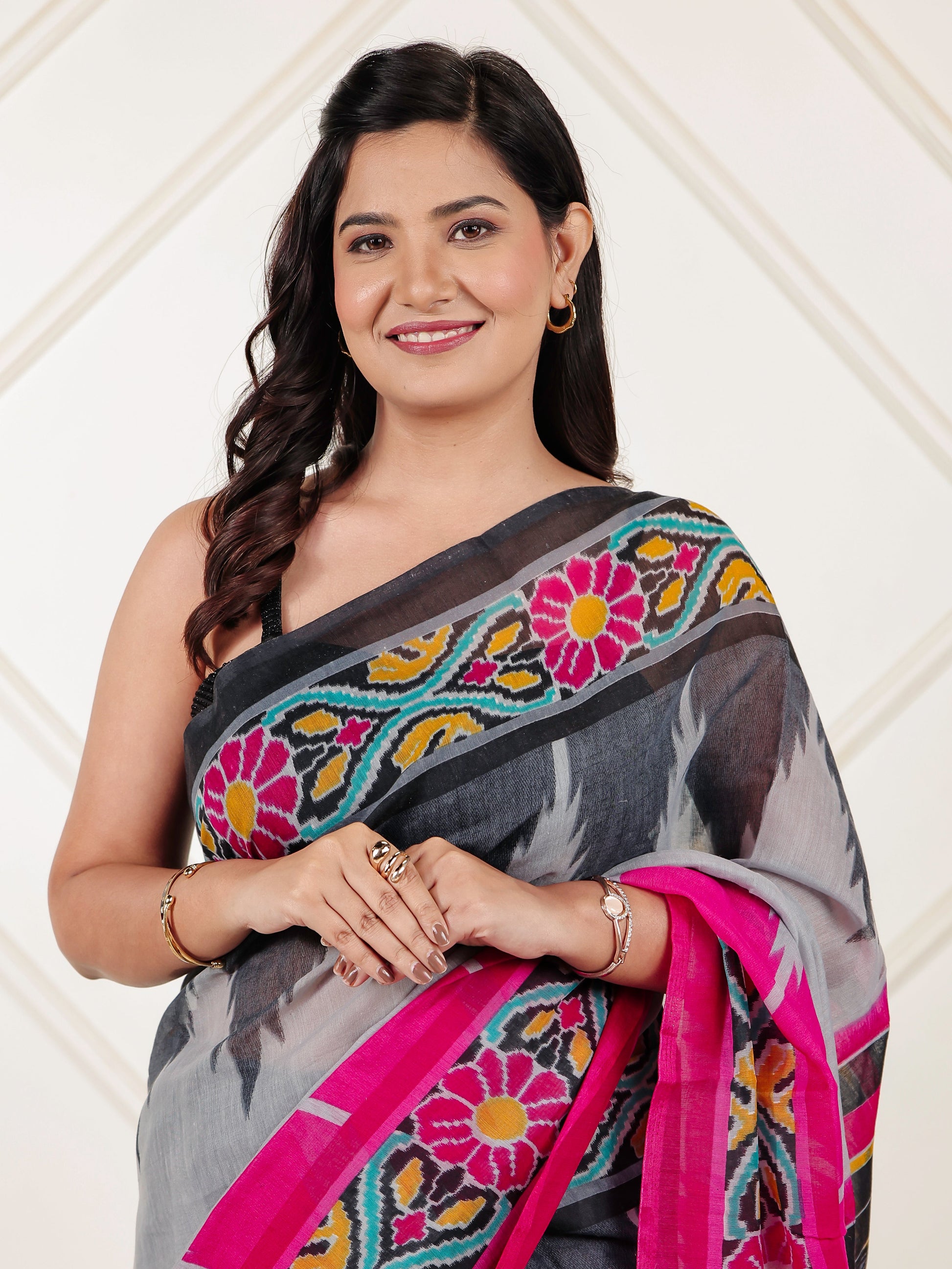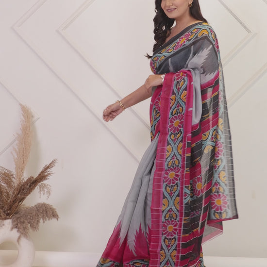 Chanderi Ikat Grey Saree