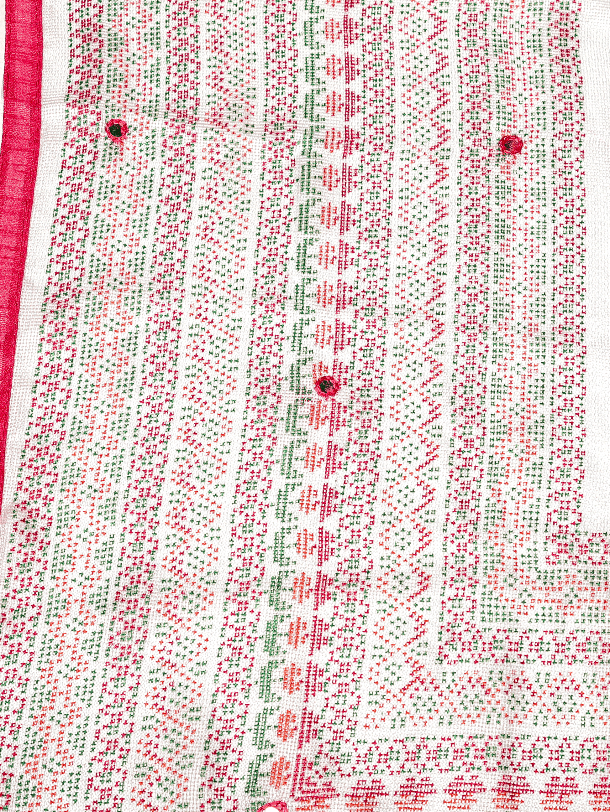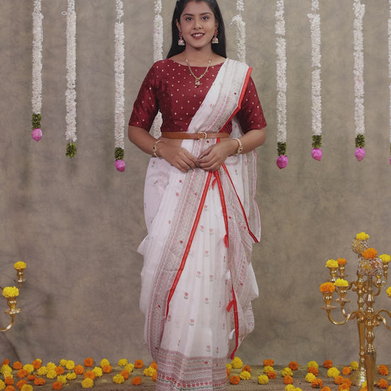 Embroidered Kota Doria Geometric Off White Saree