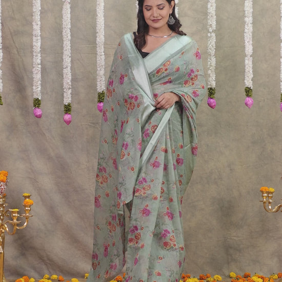 Chanderi Floral Sage Green Saree