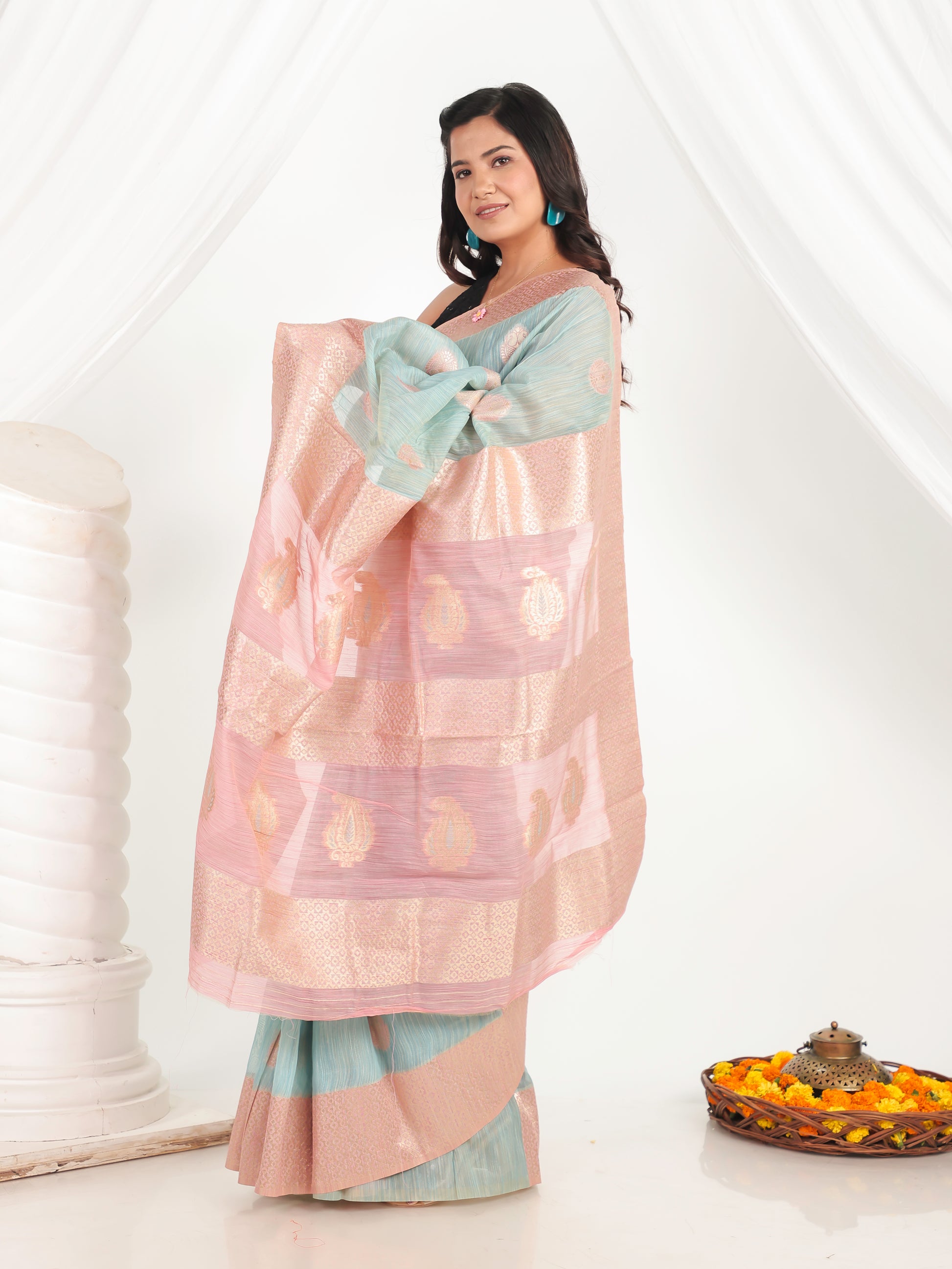 Brocade Turquoise Saree