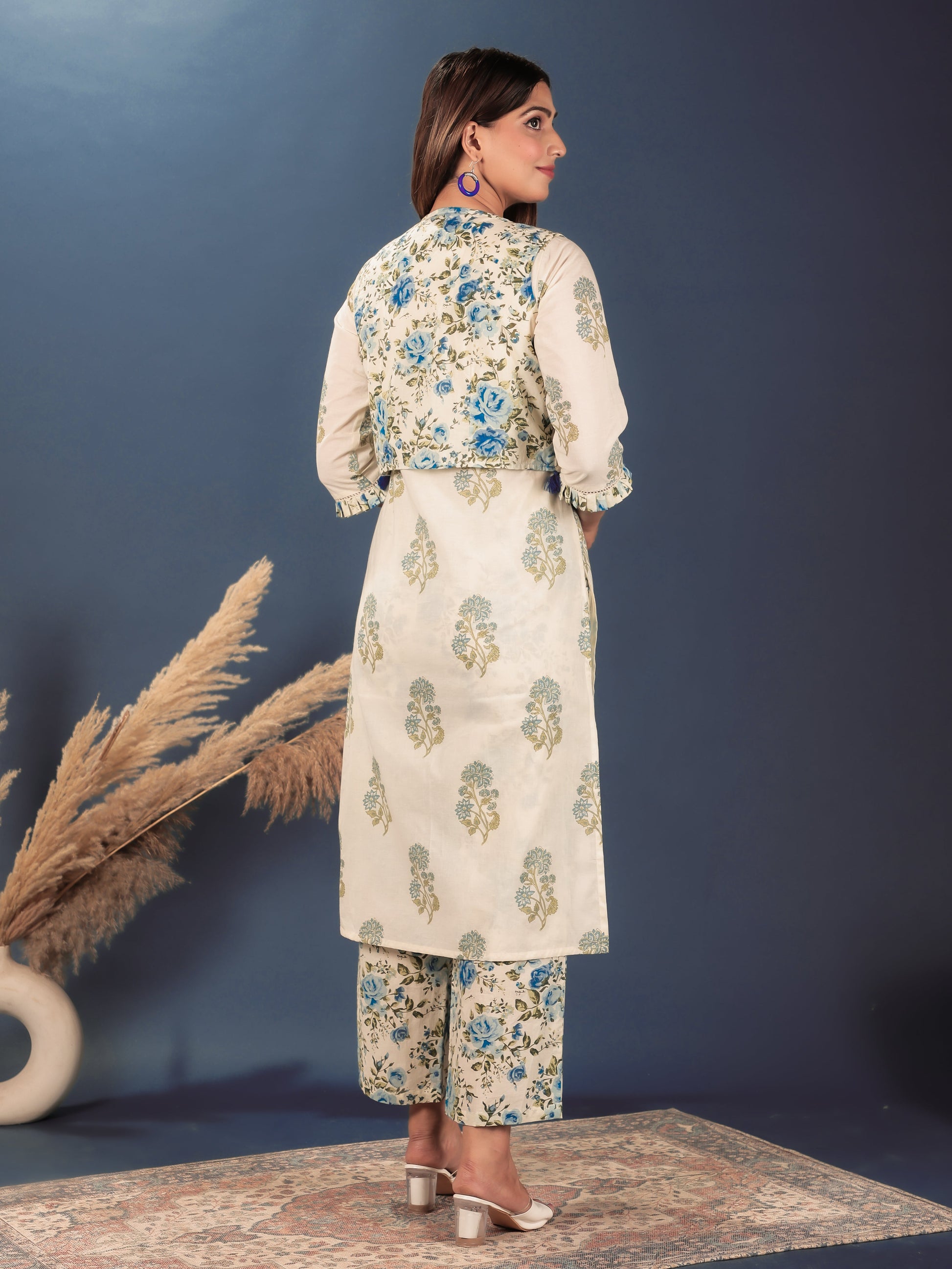 This Cream Soft Cotton kurta with a Straight flare is designed for comfort and style. Featuring a U neckline, Sleeveless sleeves, and a graceful hemline, it’s perfect for festive wear or semi-formal gatherings. The Floral highlights add depth and texture, making it a standout piece. Accessorise with a contrasting dupatta and keep it pristine by following proper care instructions.