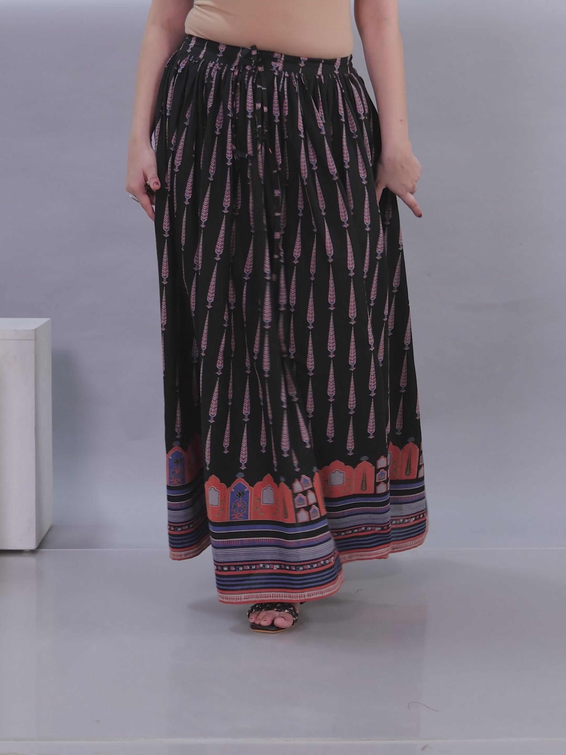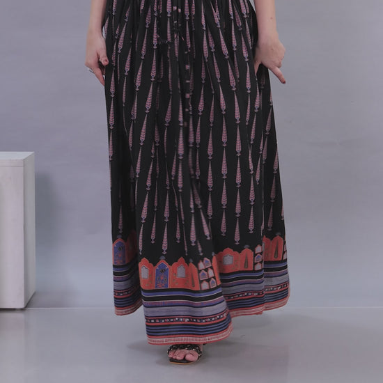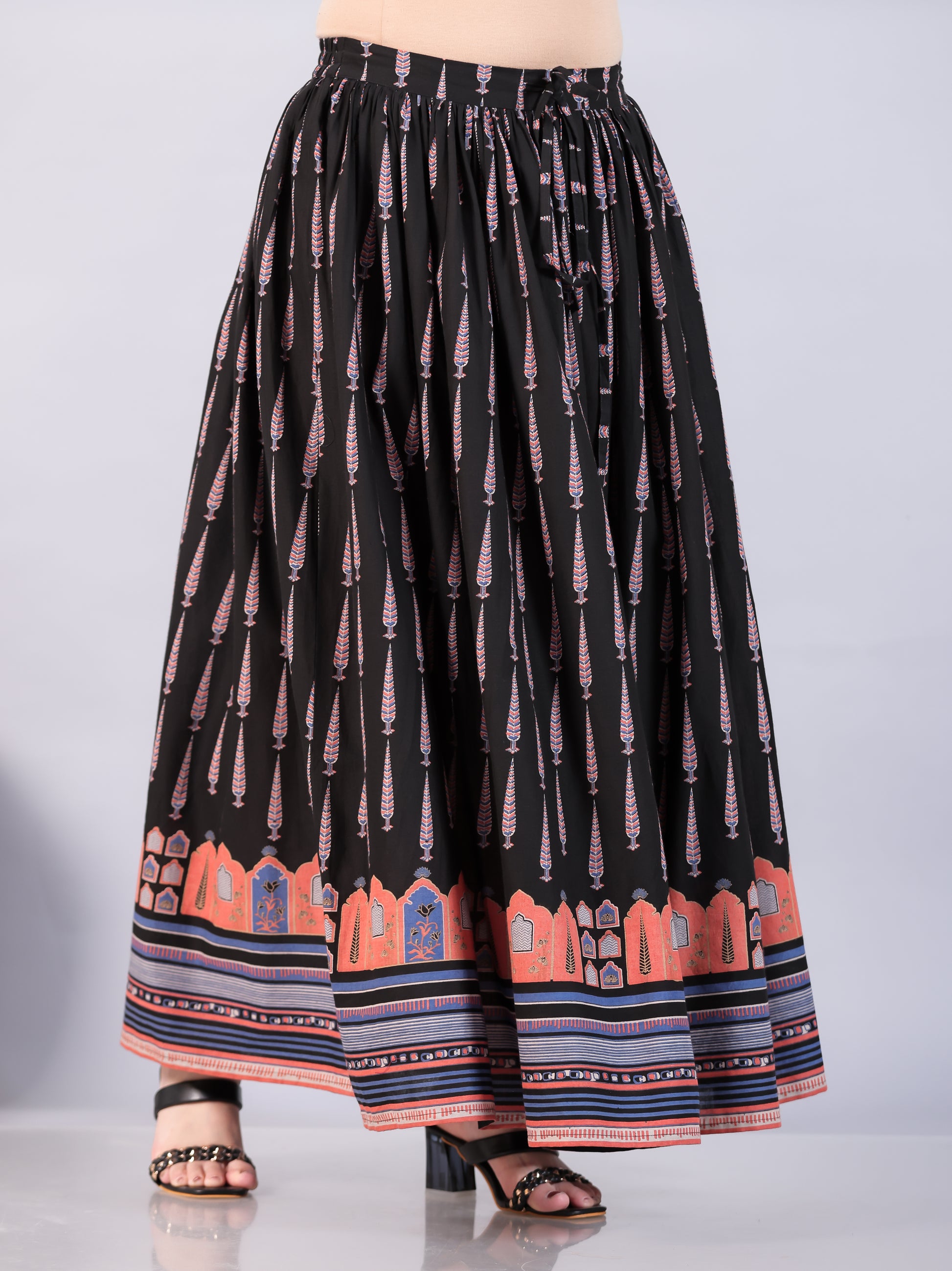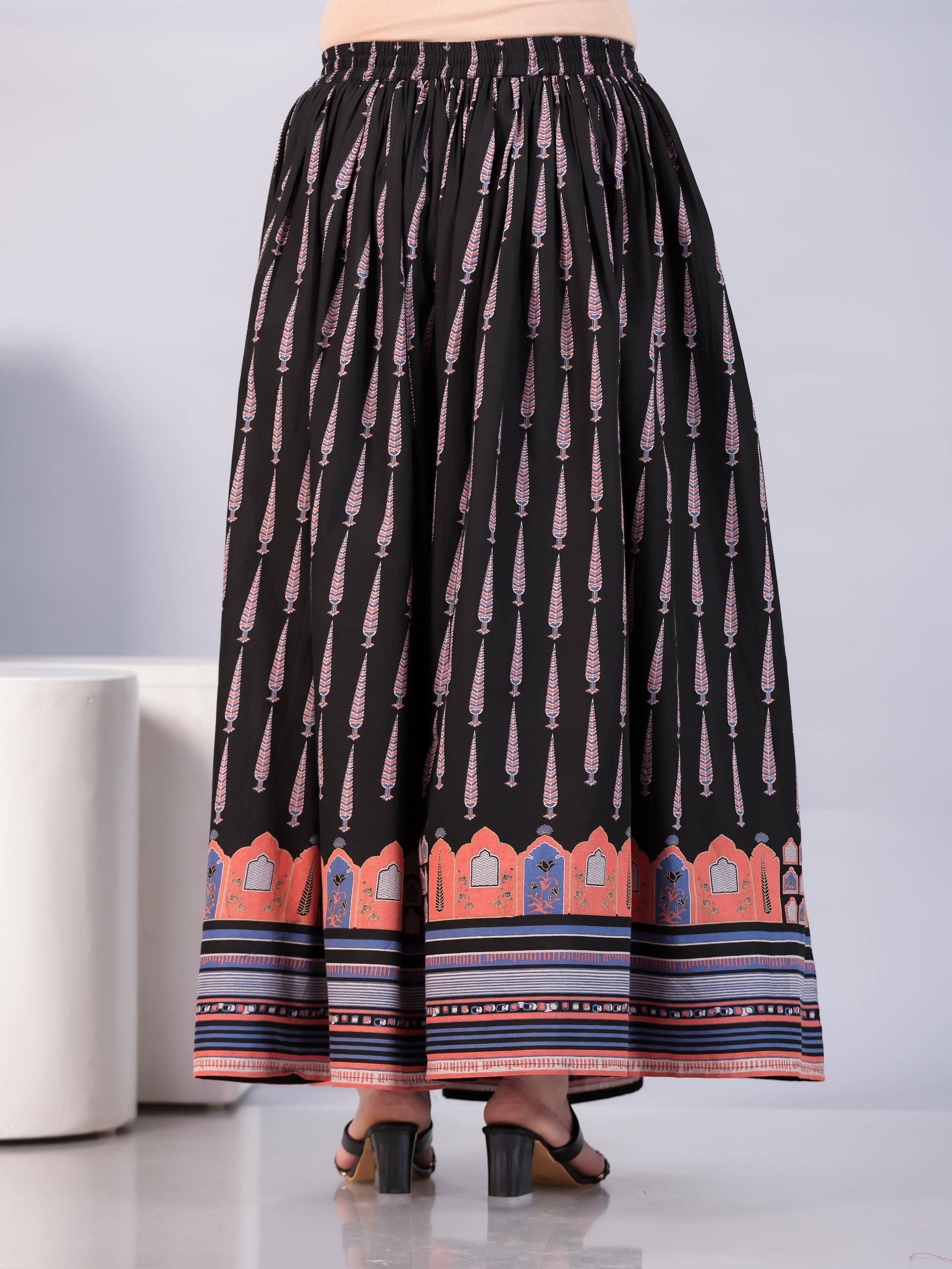Soft Cotton Mughal Print Black Skirt