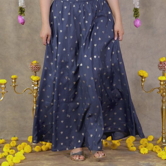 Chanderi Gold foil Blue Skirt