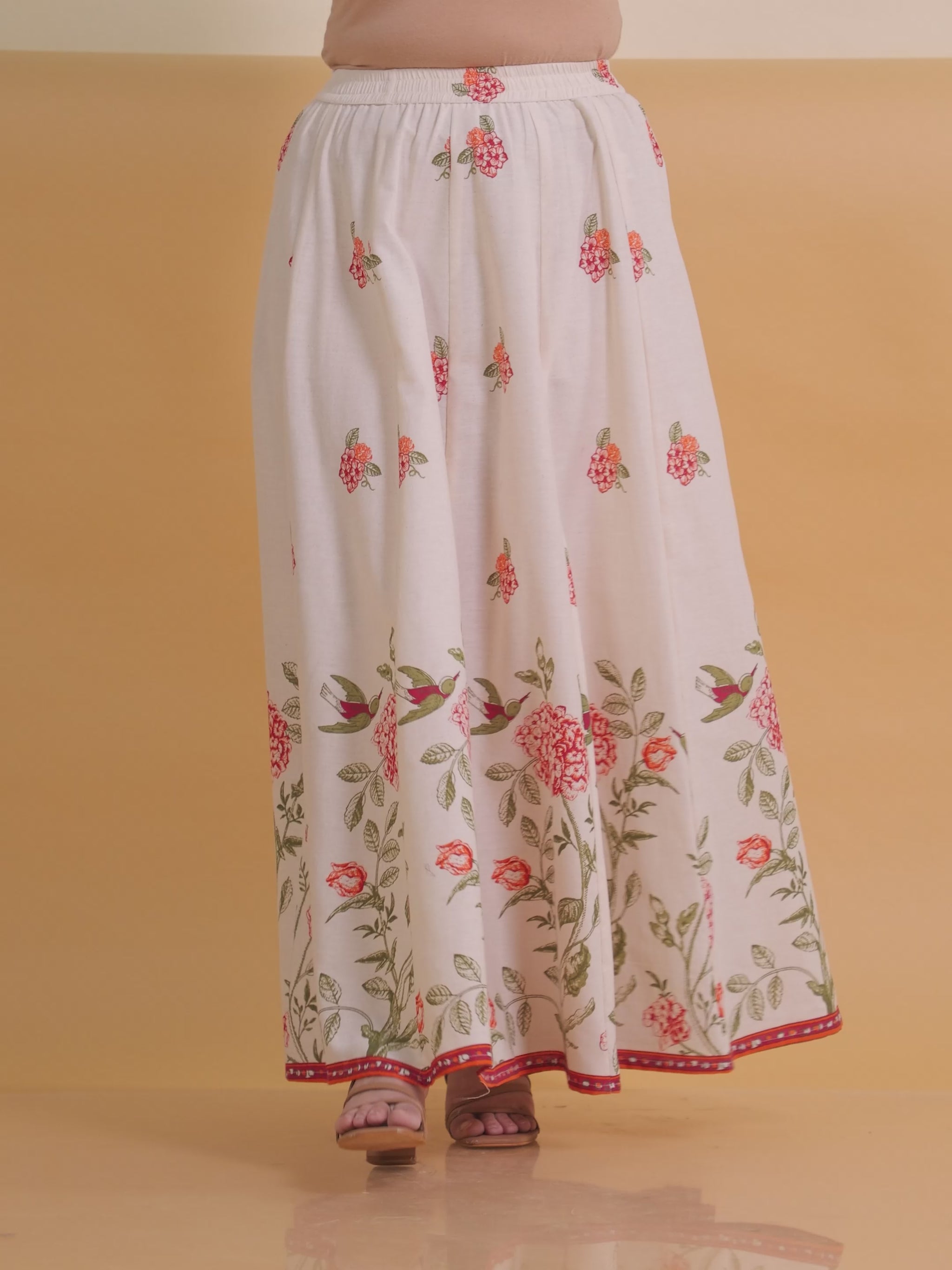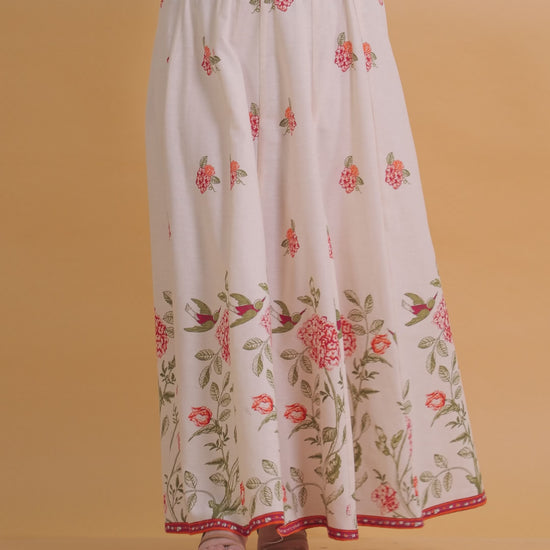 Linen Cotton Floral Off White Skirt