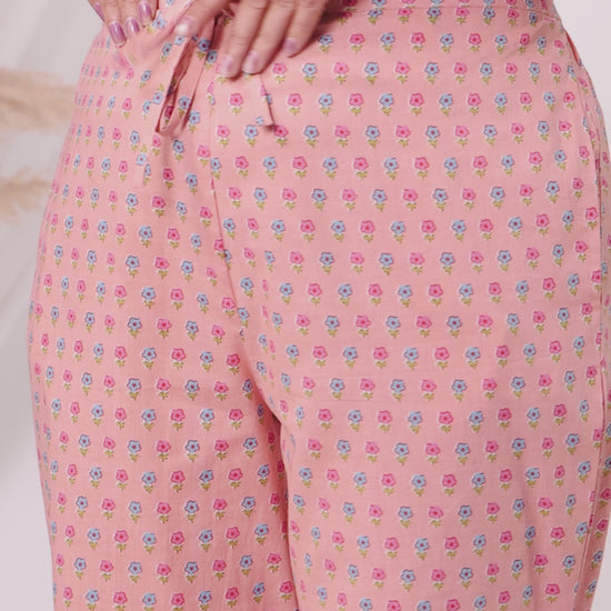 Soft Cotton Floral Peach Straight Tapered Trousers