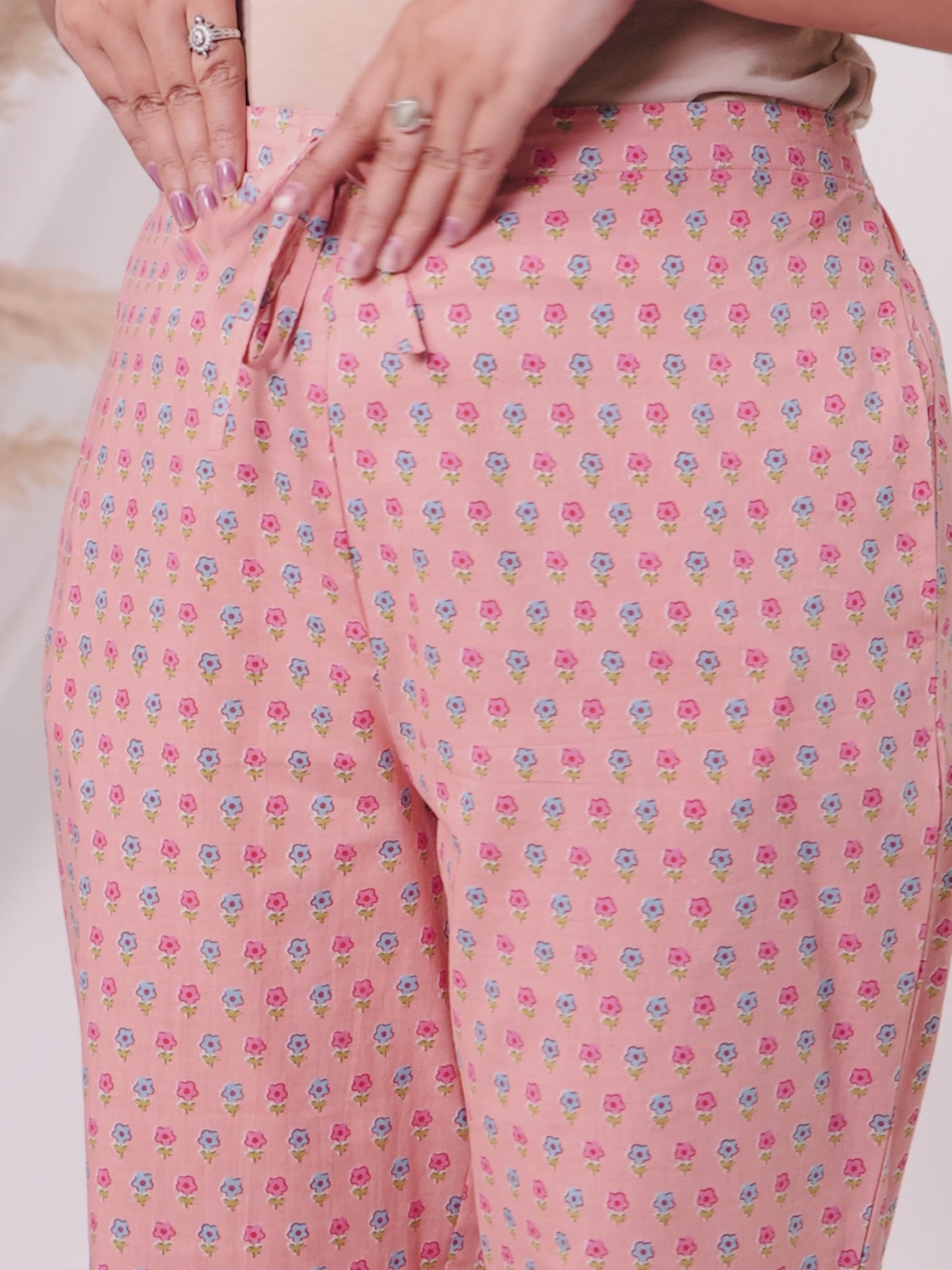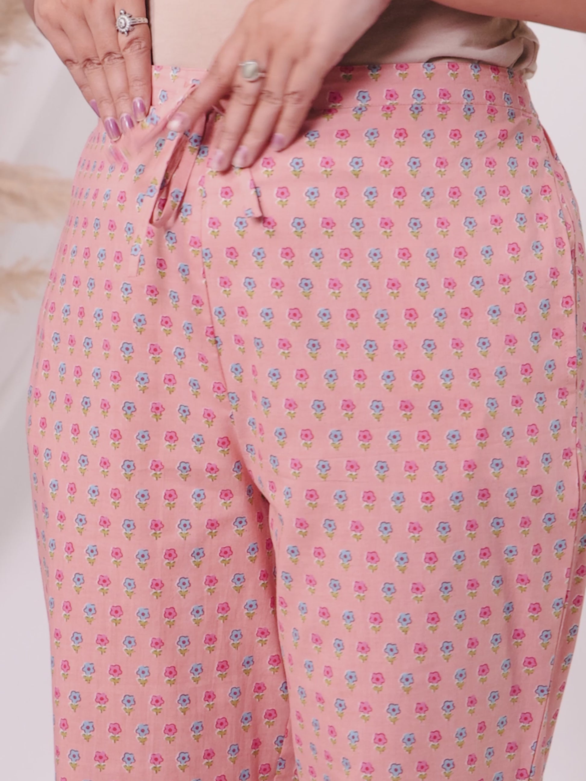 Designed for both comfort and versatility, these Soft Cotton Peach bottoms feature a stylish Floral design and pockets for added functionality. Perfect for office looks or weekend errands, they offer a flattering fit that works with a variety of tops. Pair with minimal accessories for a polished finish and enjoy effortless care.