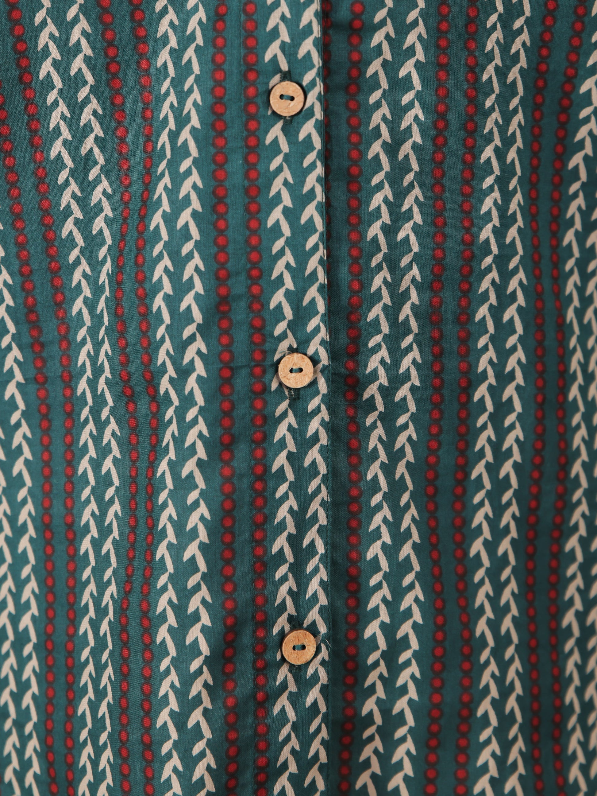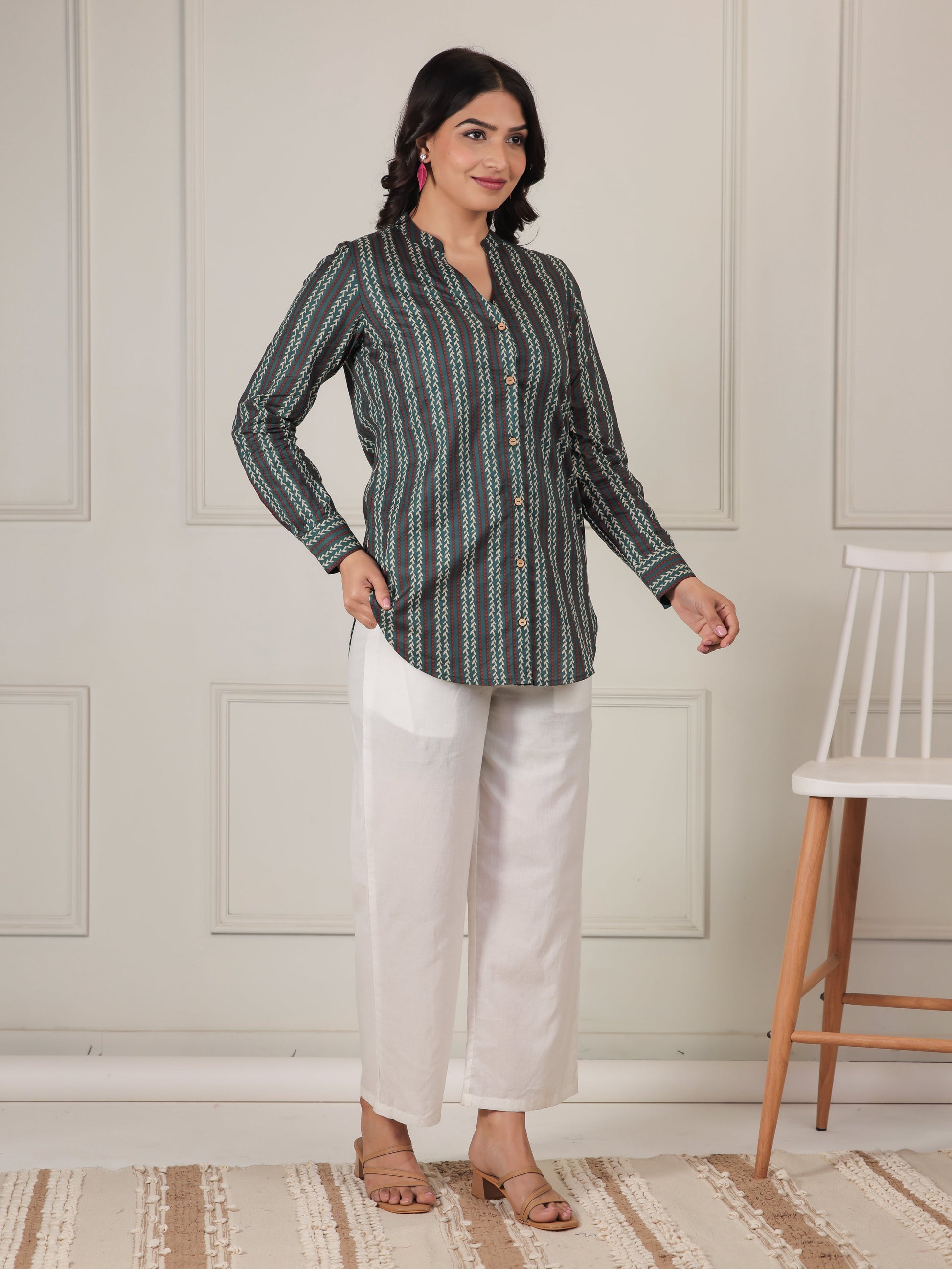 Crafted from breathable Soft Cotton, this kurta in Green blends traditional design with everyday comfort. The Striped finish adds artisanal charm, while the Hip Length silhouette ensures effortless elegance. Style with palazzos or leggings for versatile looks, from workdays to weekend outings. Designed for easy care, this kurta stays beautiful with simple care instructions.