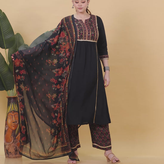 Viscose Solid Flared Black Kurta