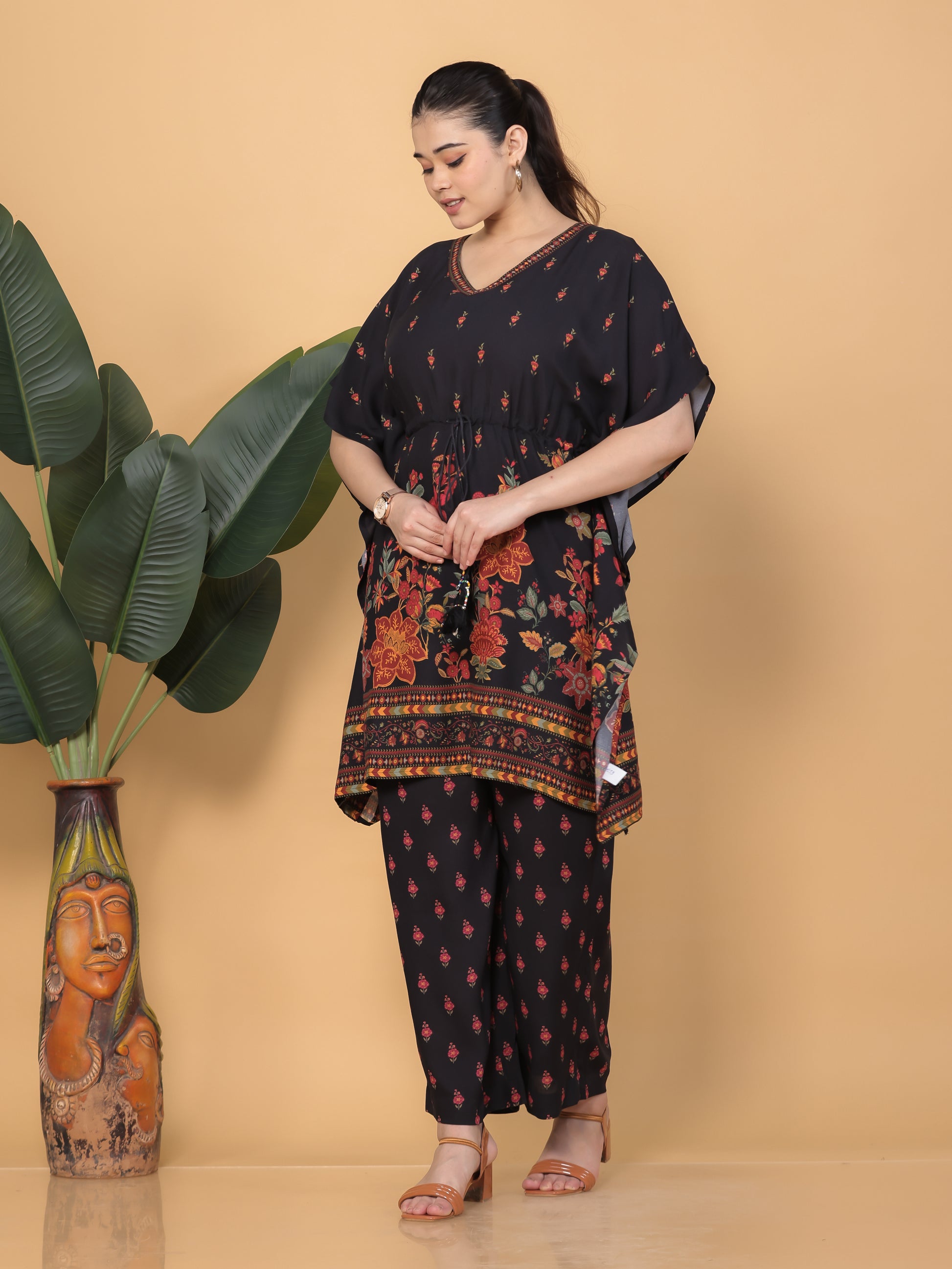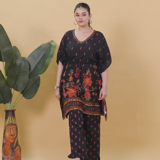 Viscose Floral Kaftan Black Kurta