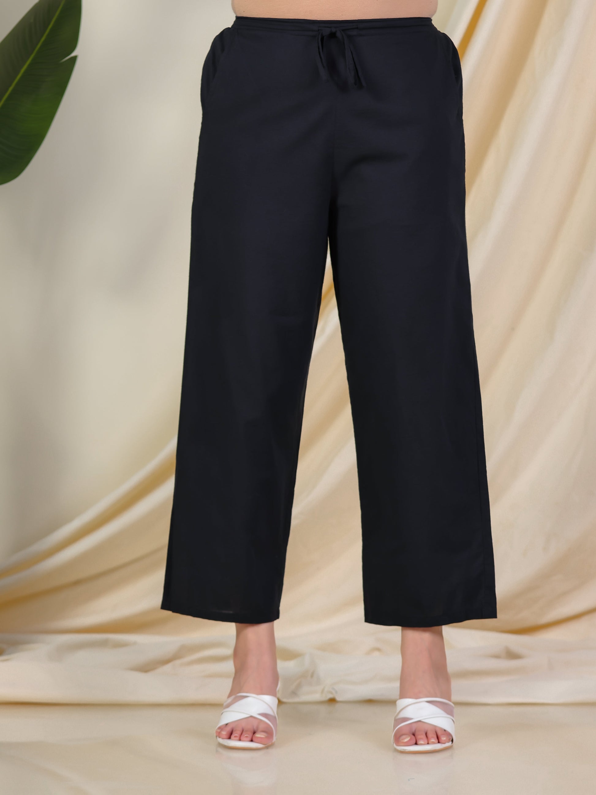 Soft Cotton Foliage Flared Black Kurta