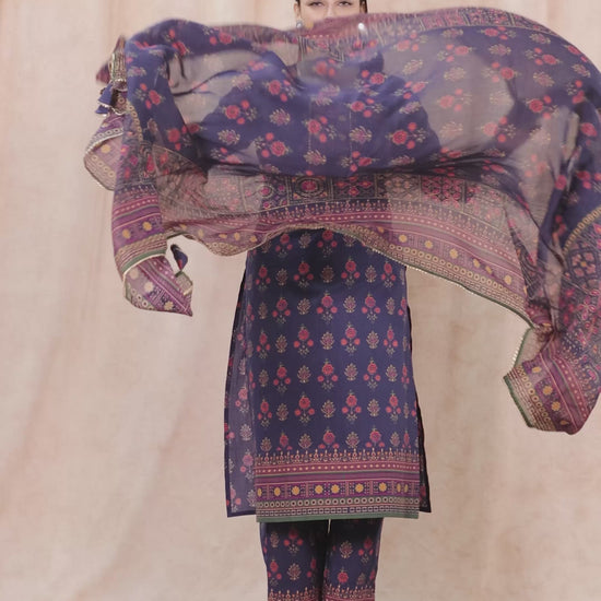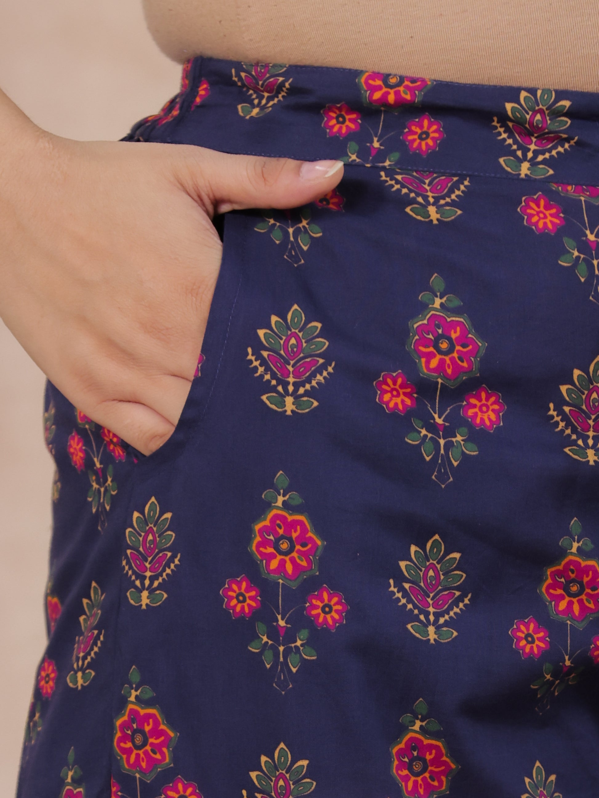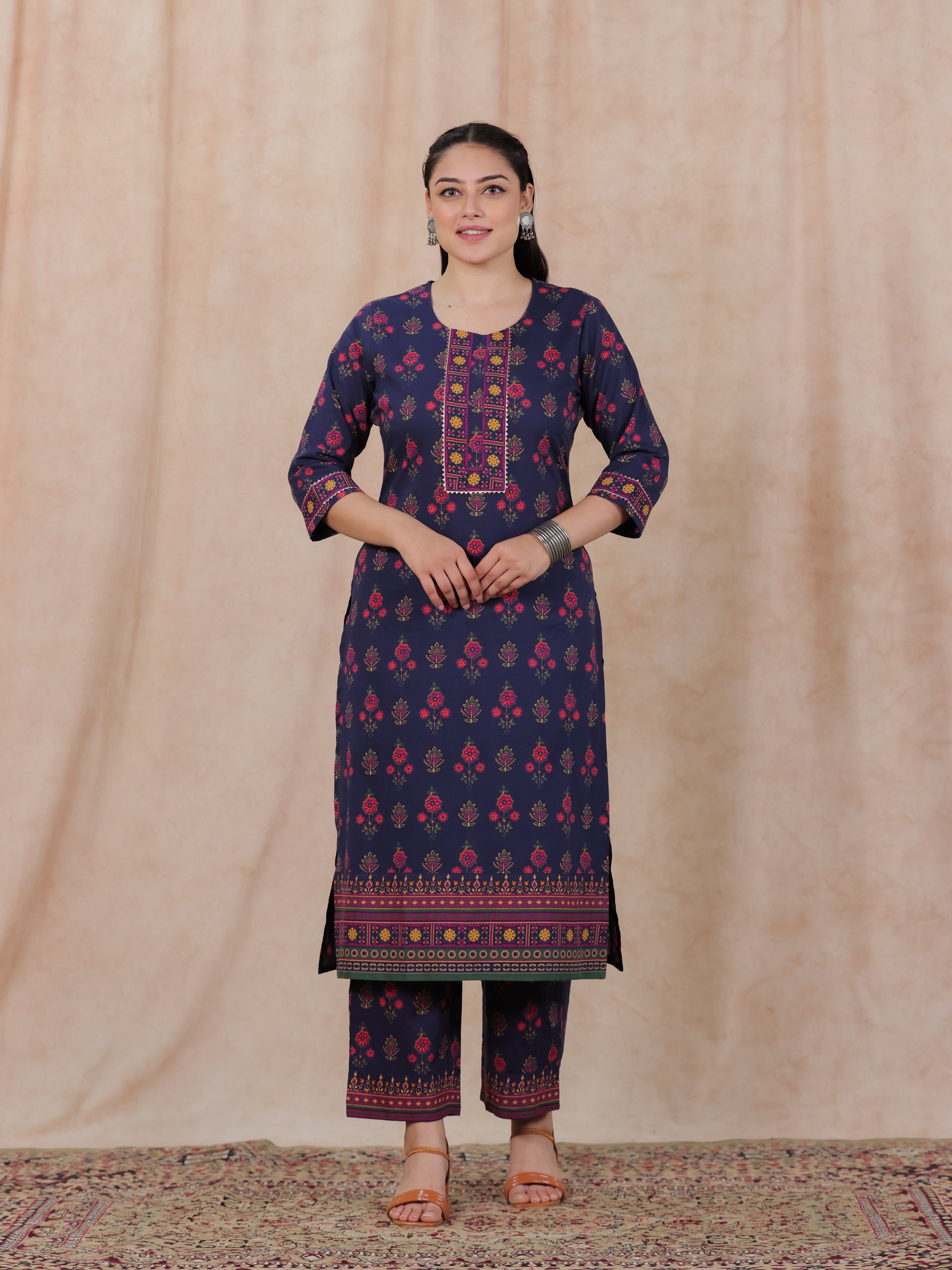 Soft Cotton Floral Straight Blue Kurta