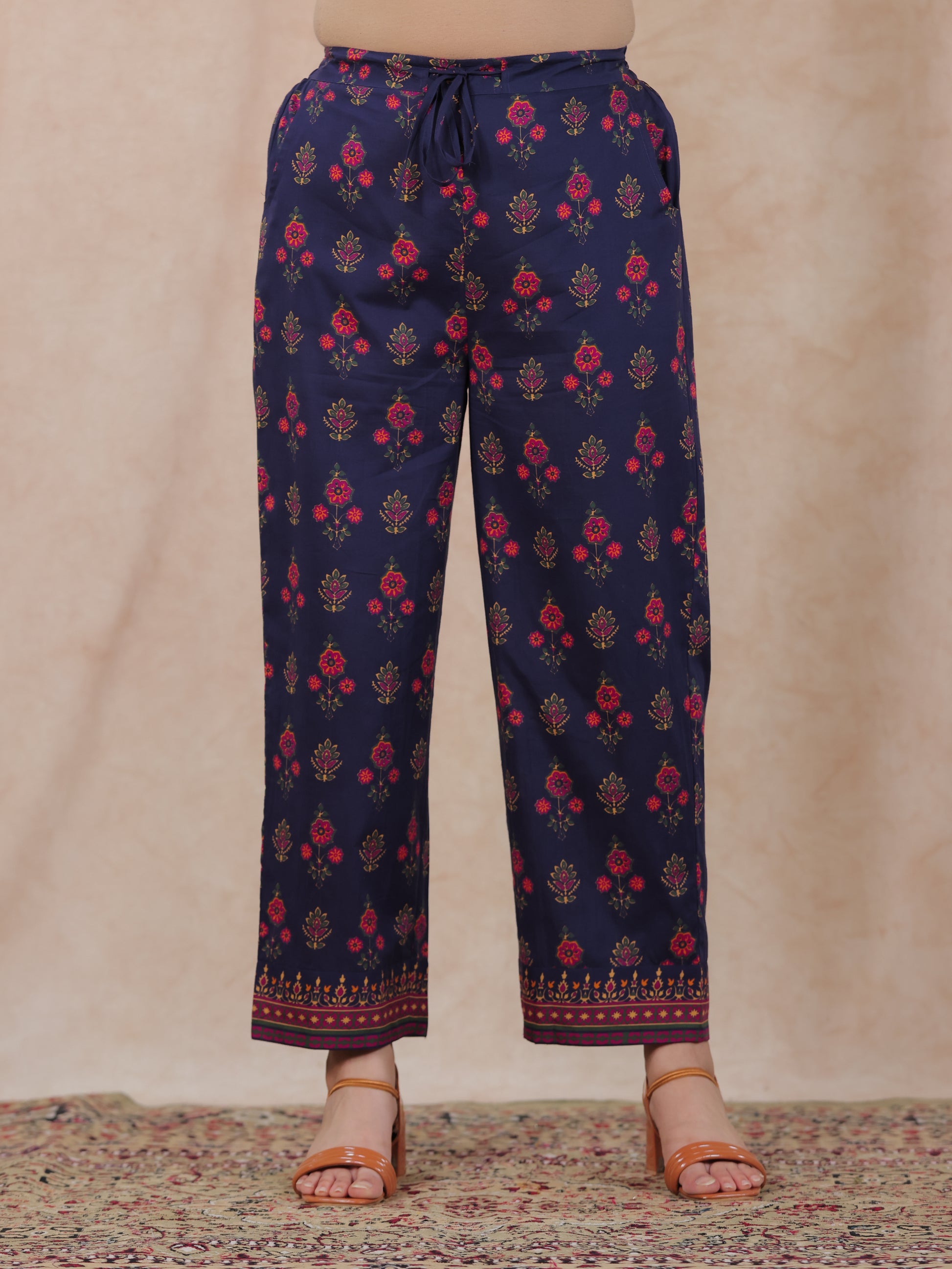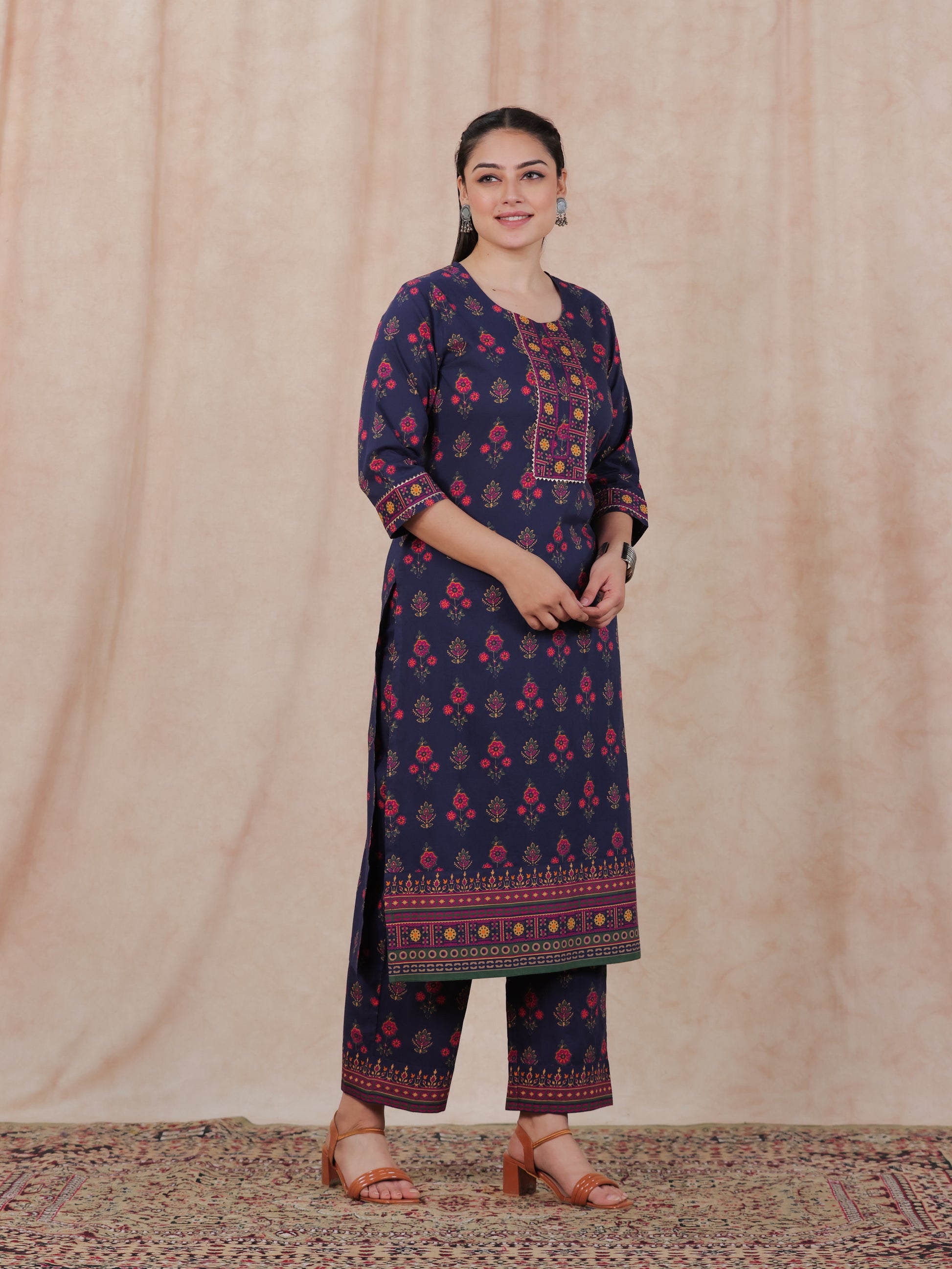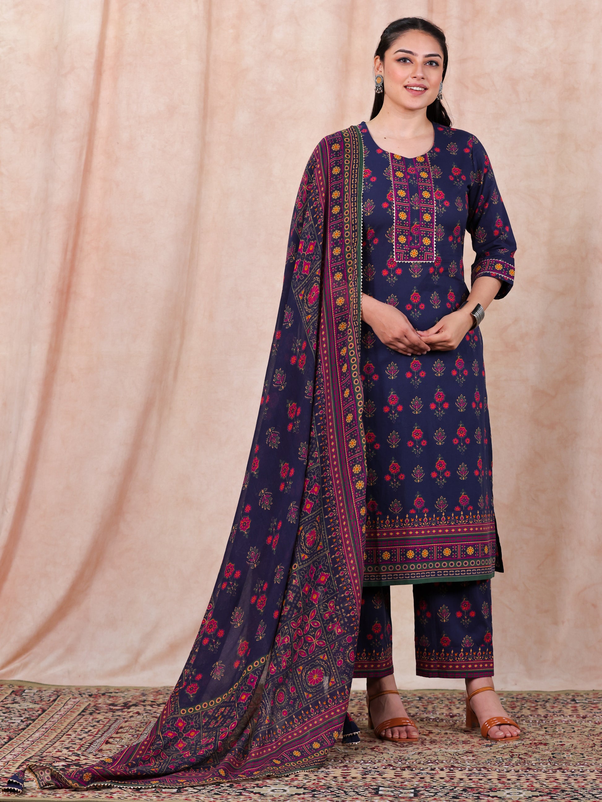 Soft Cotton Floral Straight Blue Kurta