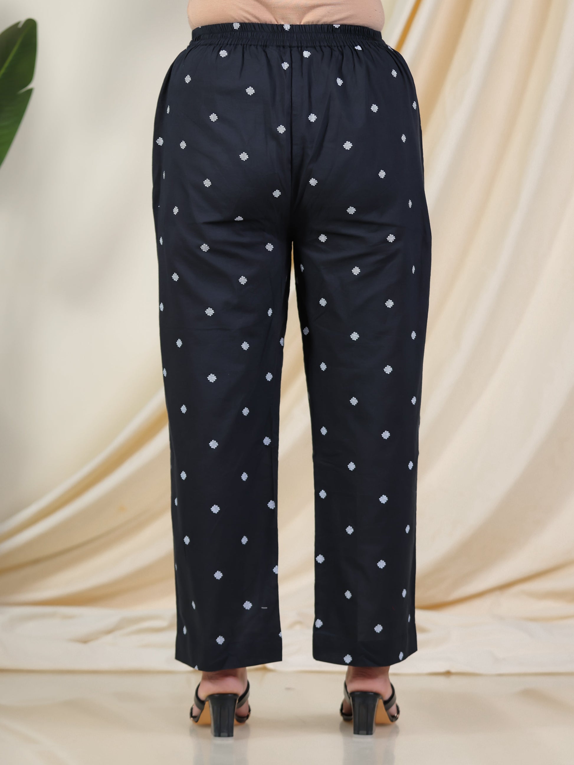 Soft Cotton Geometric Black Straight Trousers