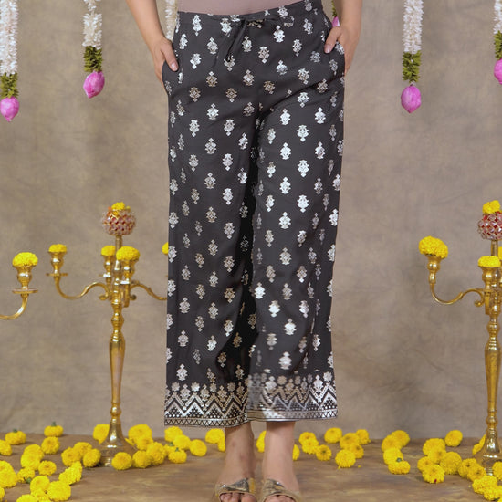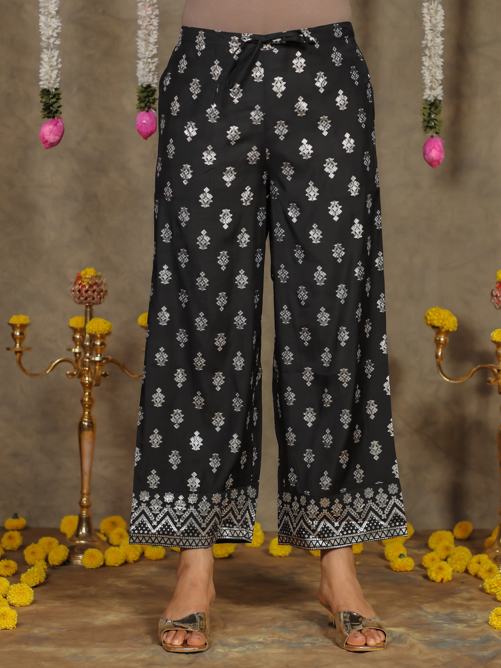 Chanderi Gold foil Black Palazzo
