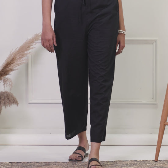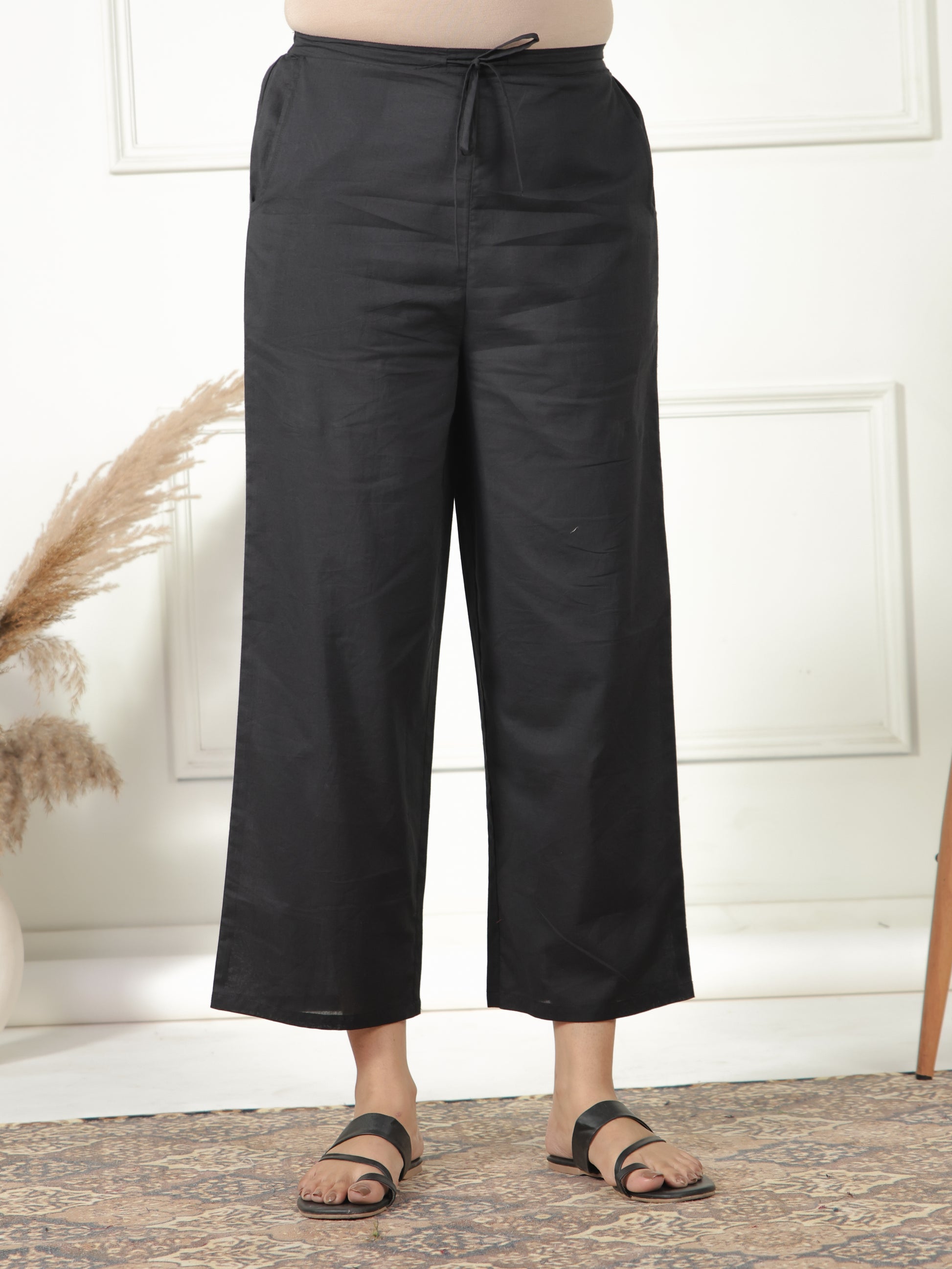 Crafted from Soft Cotton, these Black bottoms are designed for all-day comfort. The chic Solid work adds flair, and pockets provide convenience for carrying essentials. Great for casual days, shopping trips, or work, these bottoms pair effortlessly with your favourite tops. Their durable design and easy maintenance make them a practical staple.