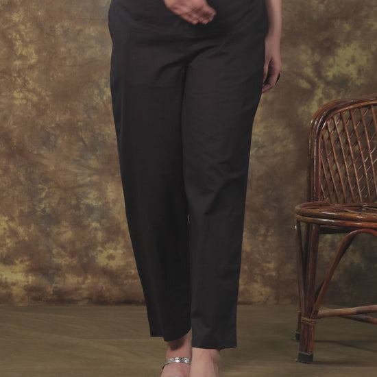 Soft Cotton Solid Black Trousers Tapered Trousers