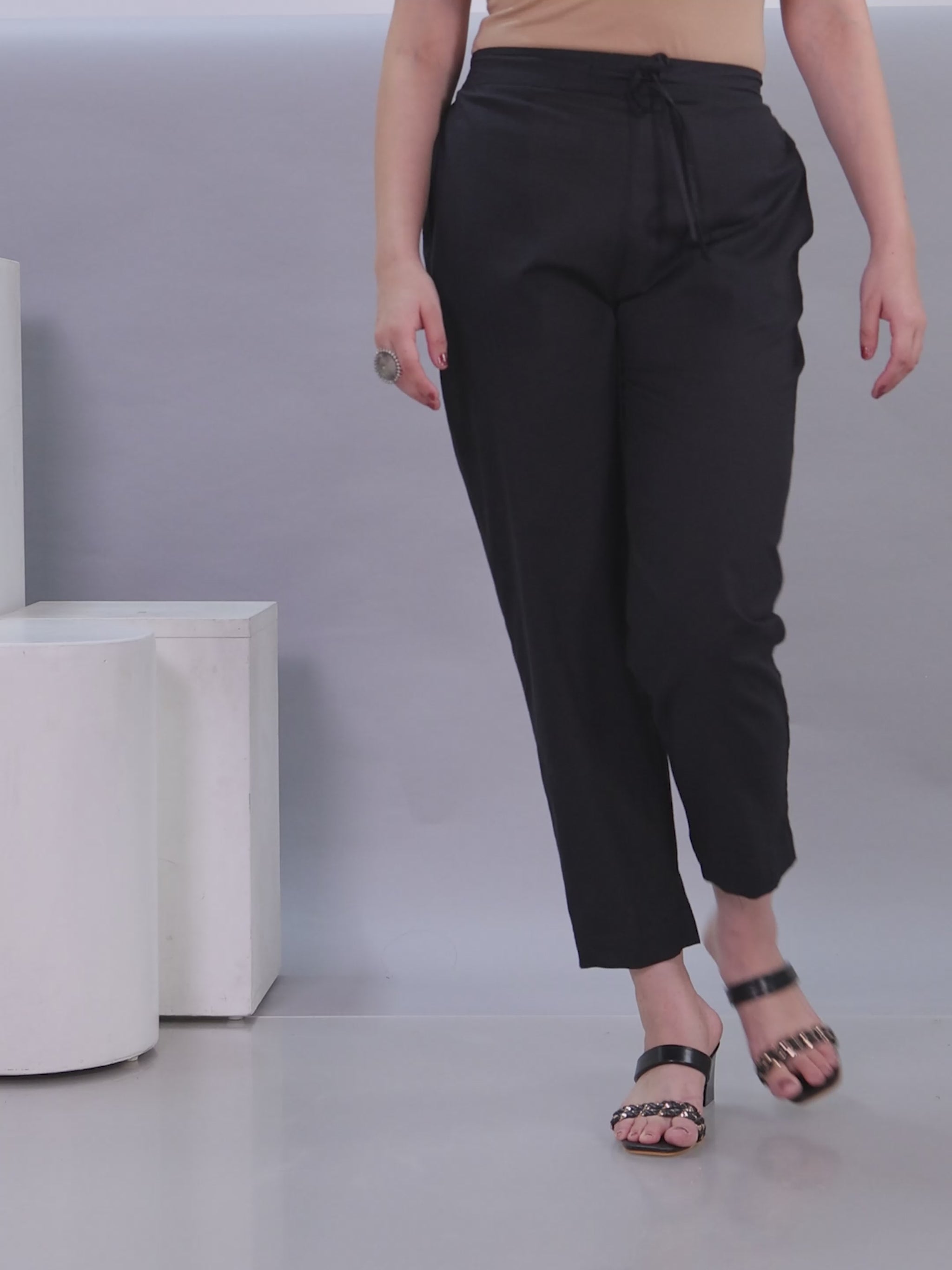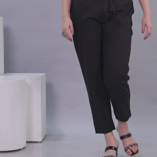 Soft Cotton Solid Black Tapered Tapered Trousers