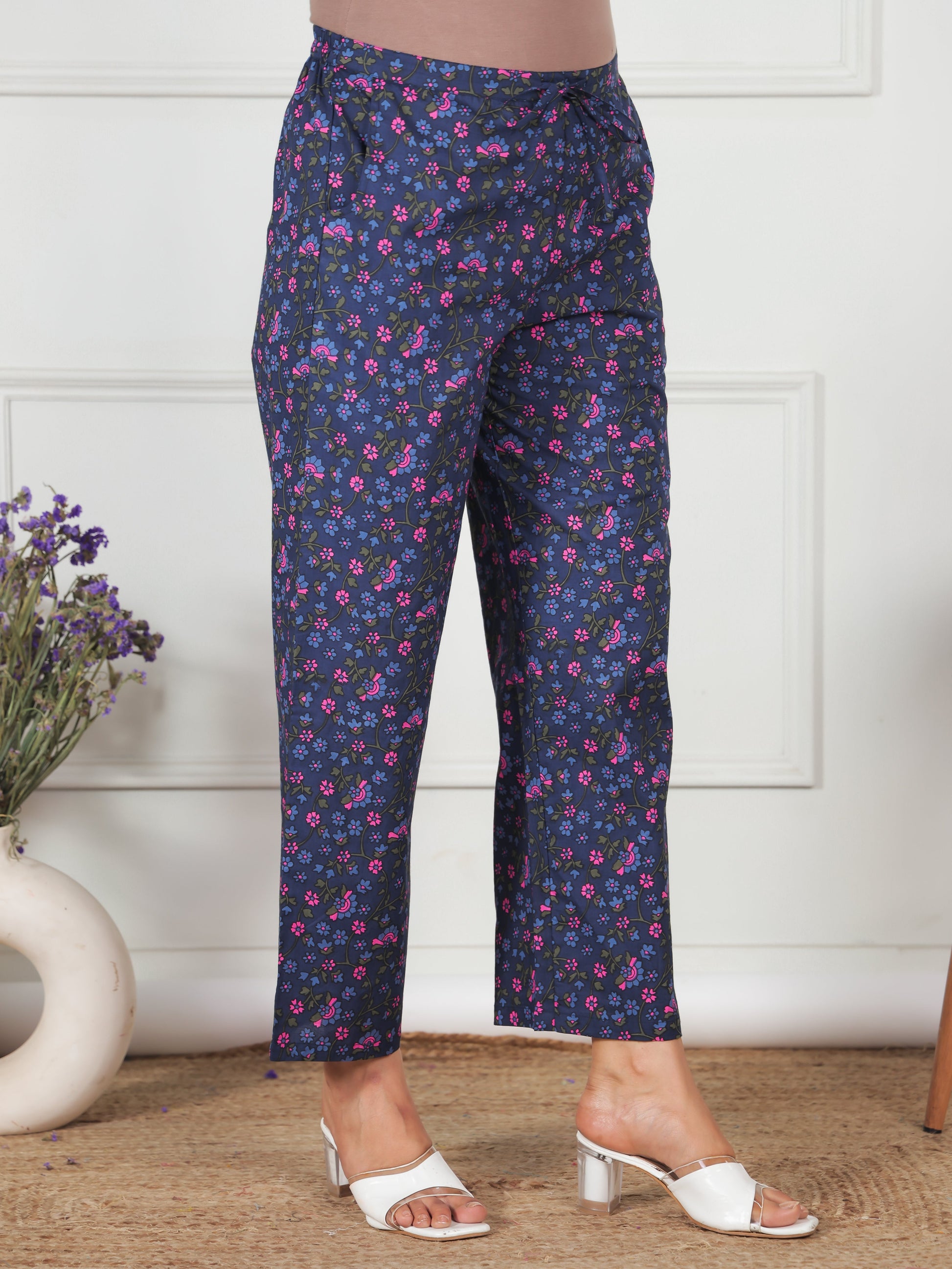 Upgrade your wardrobe with these Blue bottoms made from lightweight Soft Cotton. The Floral accents bring subtle charm, while pockets make them practical for all-day wear. Perfect for pairing with ethnic kurtas or western blouses, these bottoms are a go-to choice for comfort and style. Easy care ensures they stay fresh season after season.