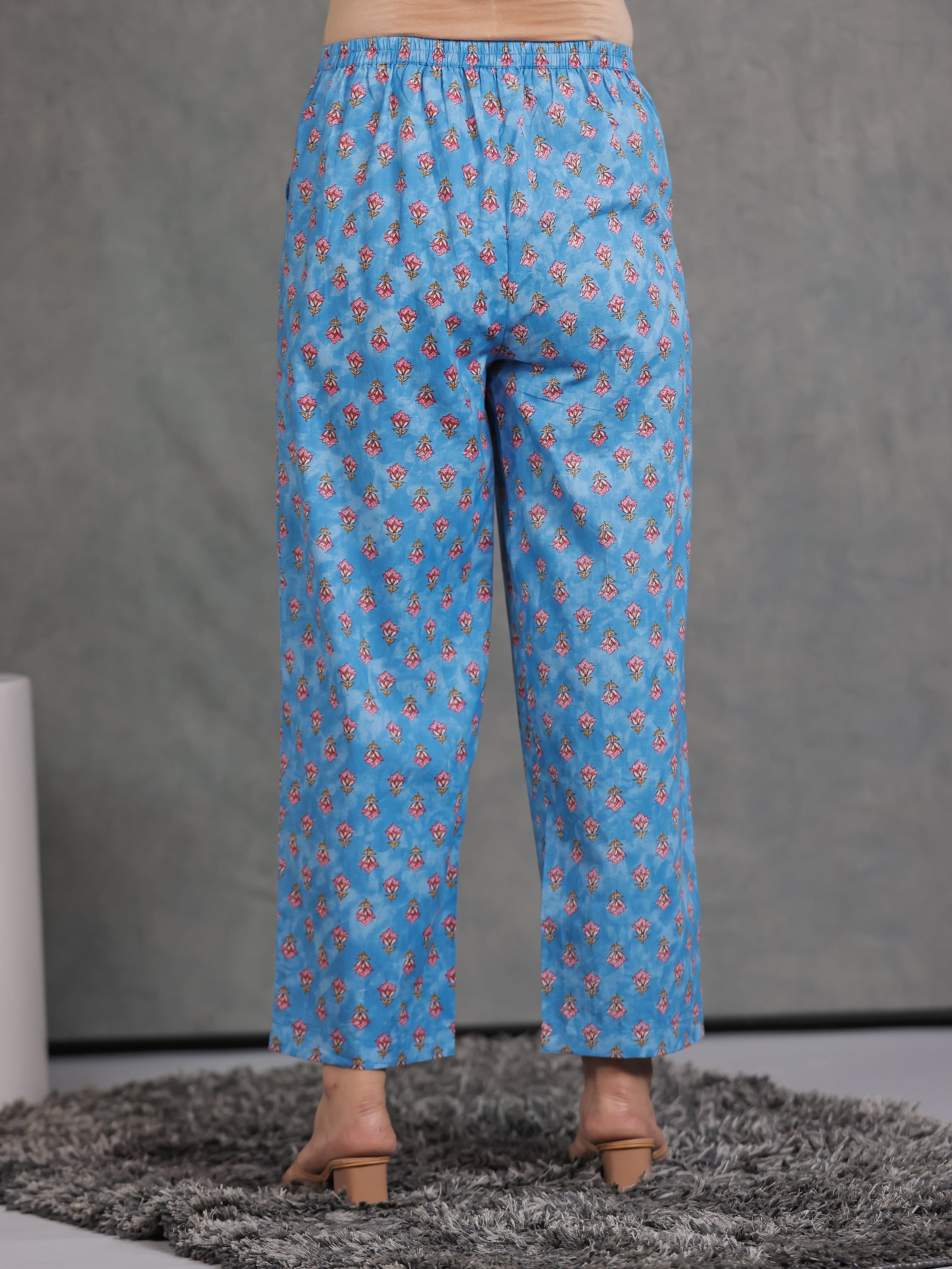 Soft Cotton Floral Blue Straight Trousers