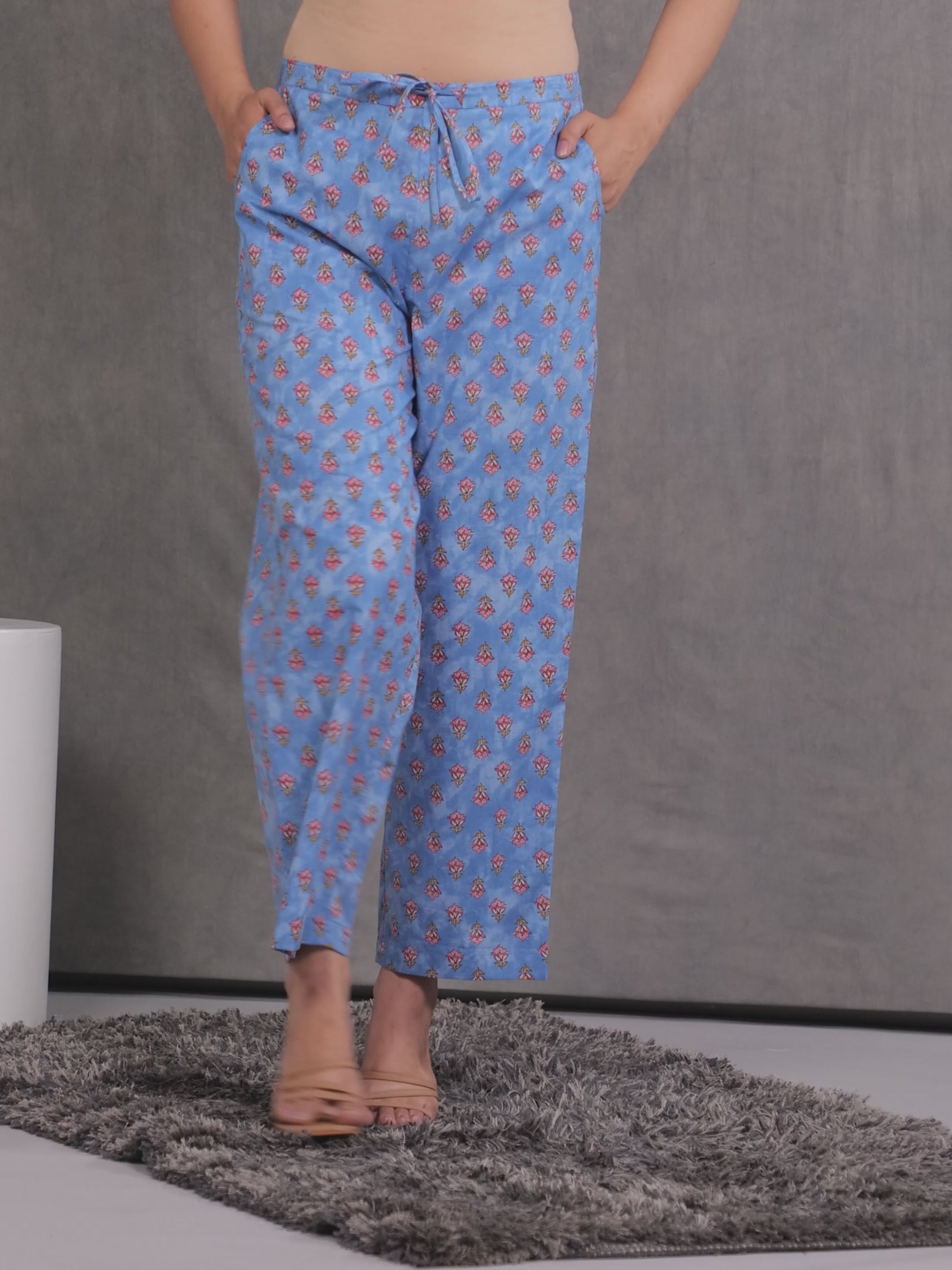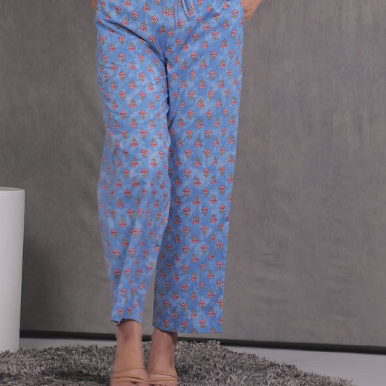 Soft Cotton Floral Blue Trousers