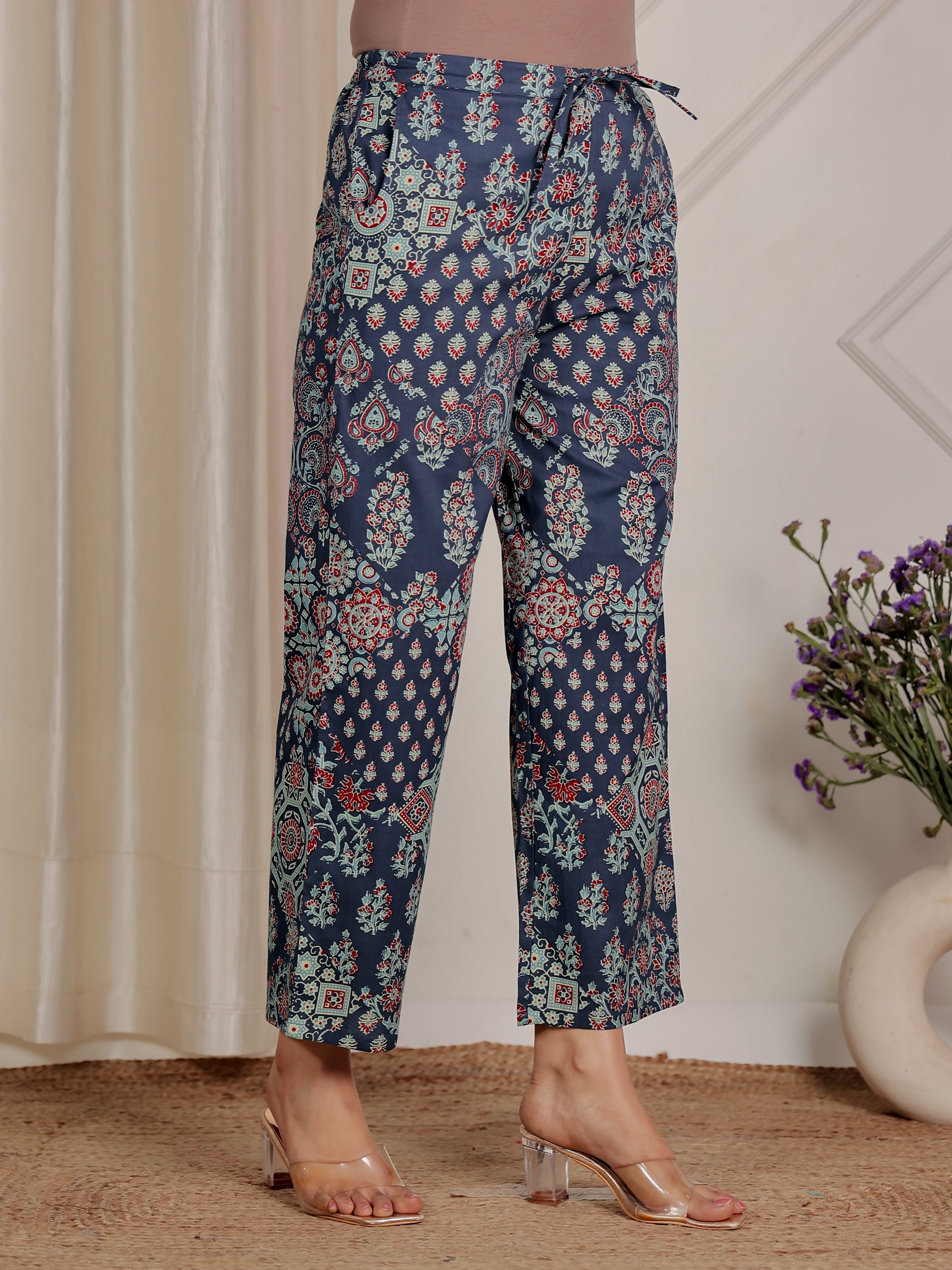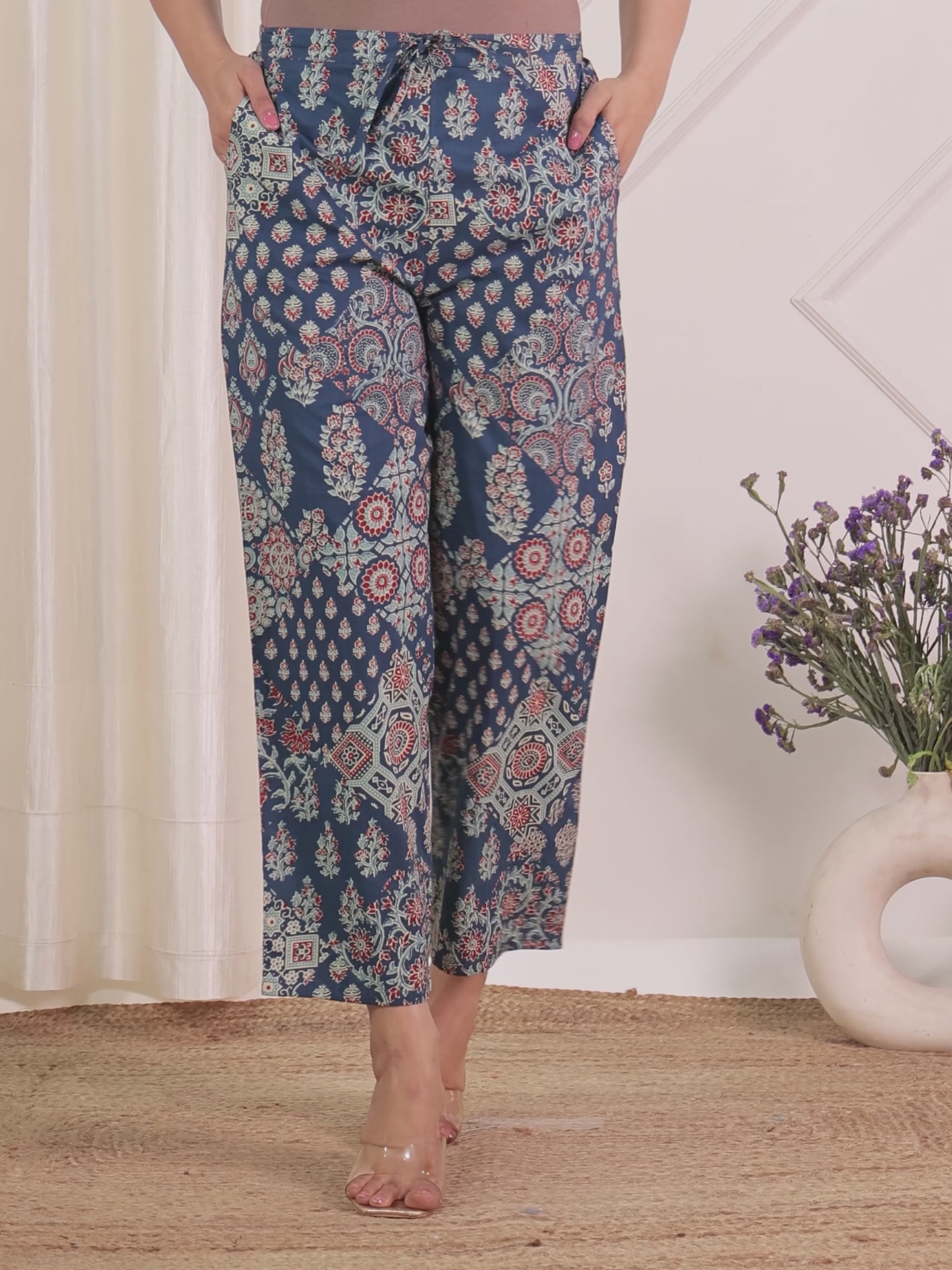 Upgrade your wardrobe with these Blue bottoms made from lightweight Soft Cotton. The Geometric accents bring subtle charm, while pockets make them practical for all-day wear. Perfect for pairing with ethnic kurtas or western blouses, these bottoms are a go-to choice for comfort and style. Easy care ensures they stay fresh season after season.