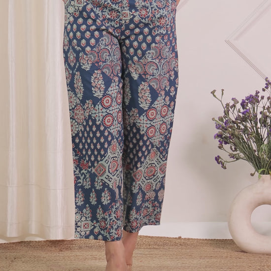 Soft Cotton Geometric Blue Straight Trousers