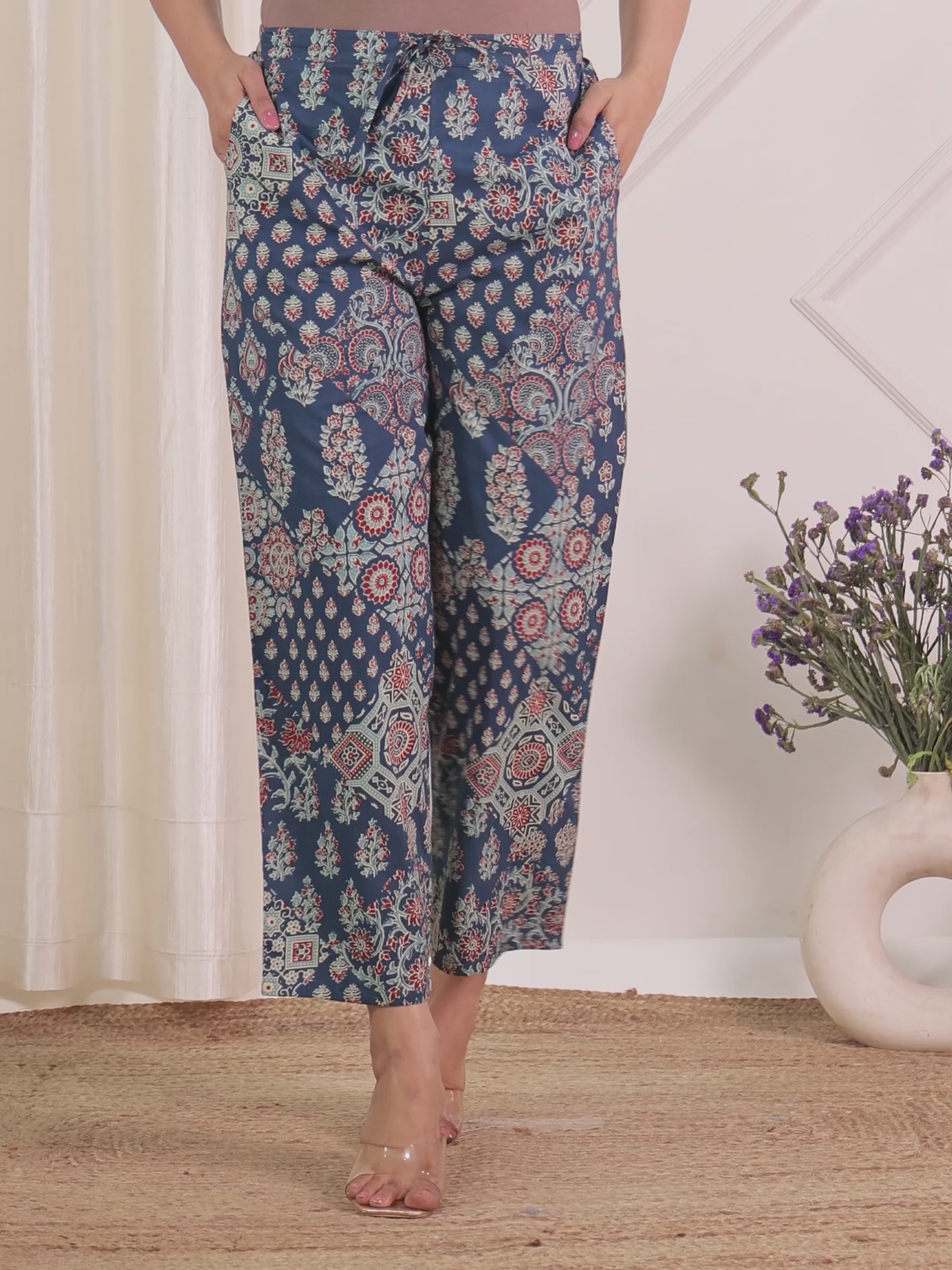 Meet your new wardrobe favourite – these comfortable blue soft cotton trousers that go with everything. These versatile trousers feature a contemporary cut that flatters the silhouette. Cut to a flattering ankle length that works beautifully with both flats and heels. Featuring an accommodating partially elastic waist that provides custom comfort without pressure points. Perfect for everyday wear or casual outings, and conveniently machine wash for effortless care.