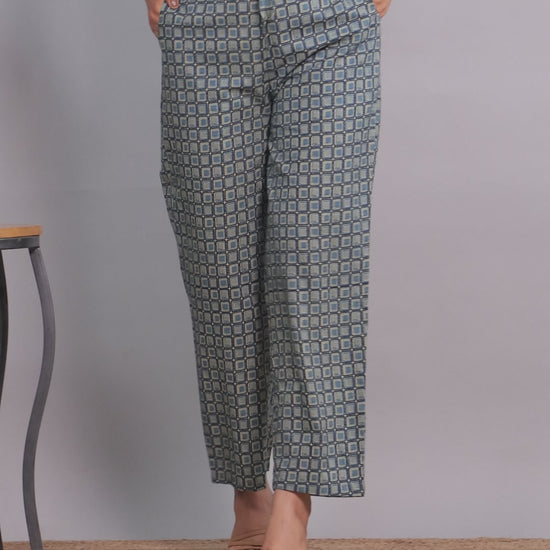 Soft Cotton Geometric Blue Trousers