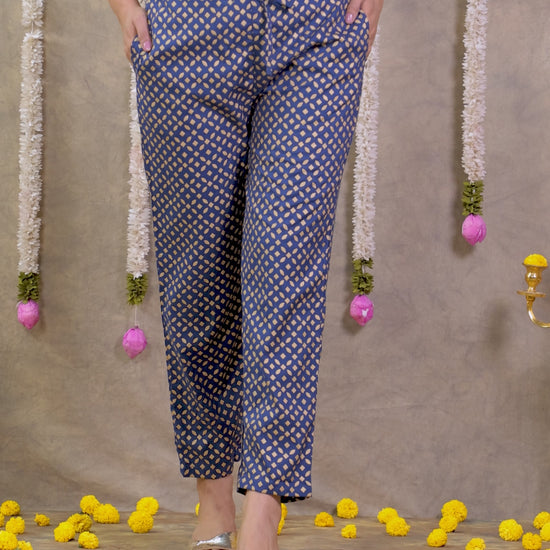 Viscose Gold foil Blue Trousers