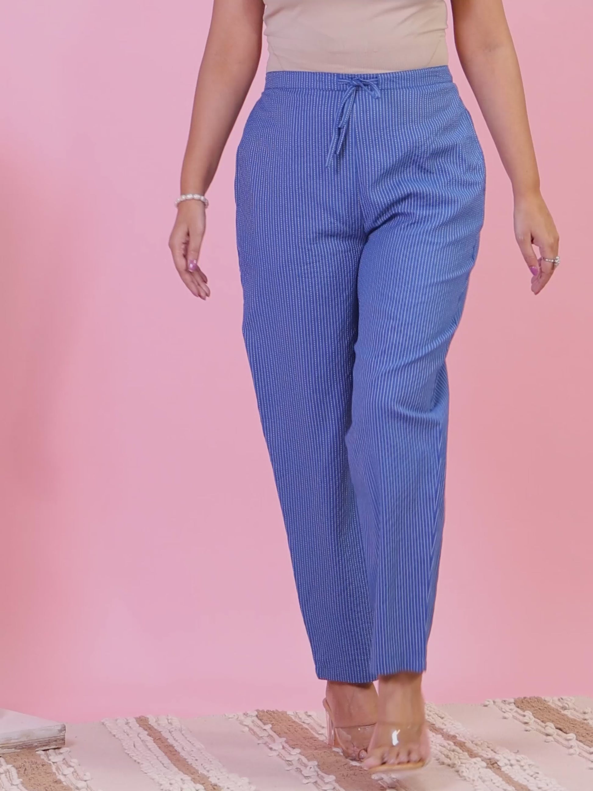 Crafted from Kantha Cotton, these Blue bottoms are designed for all-day comfort. The chic Solid work adds flair, and pockets provide convenience for carrying essentials. Great for casual days, shopping trips, or work, these bottoms pair effortlessly with your favourite tops. Their durable design and easy maintenance make them a practical staple.
