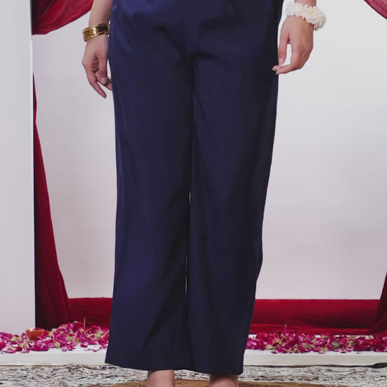 Poly Chanderi Solid Blue Straight Trousers