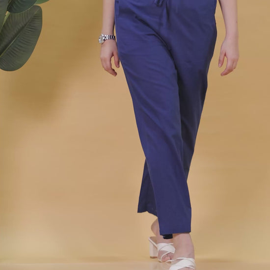 Soft Cotton Solid Blue Trousers Straight Trousers