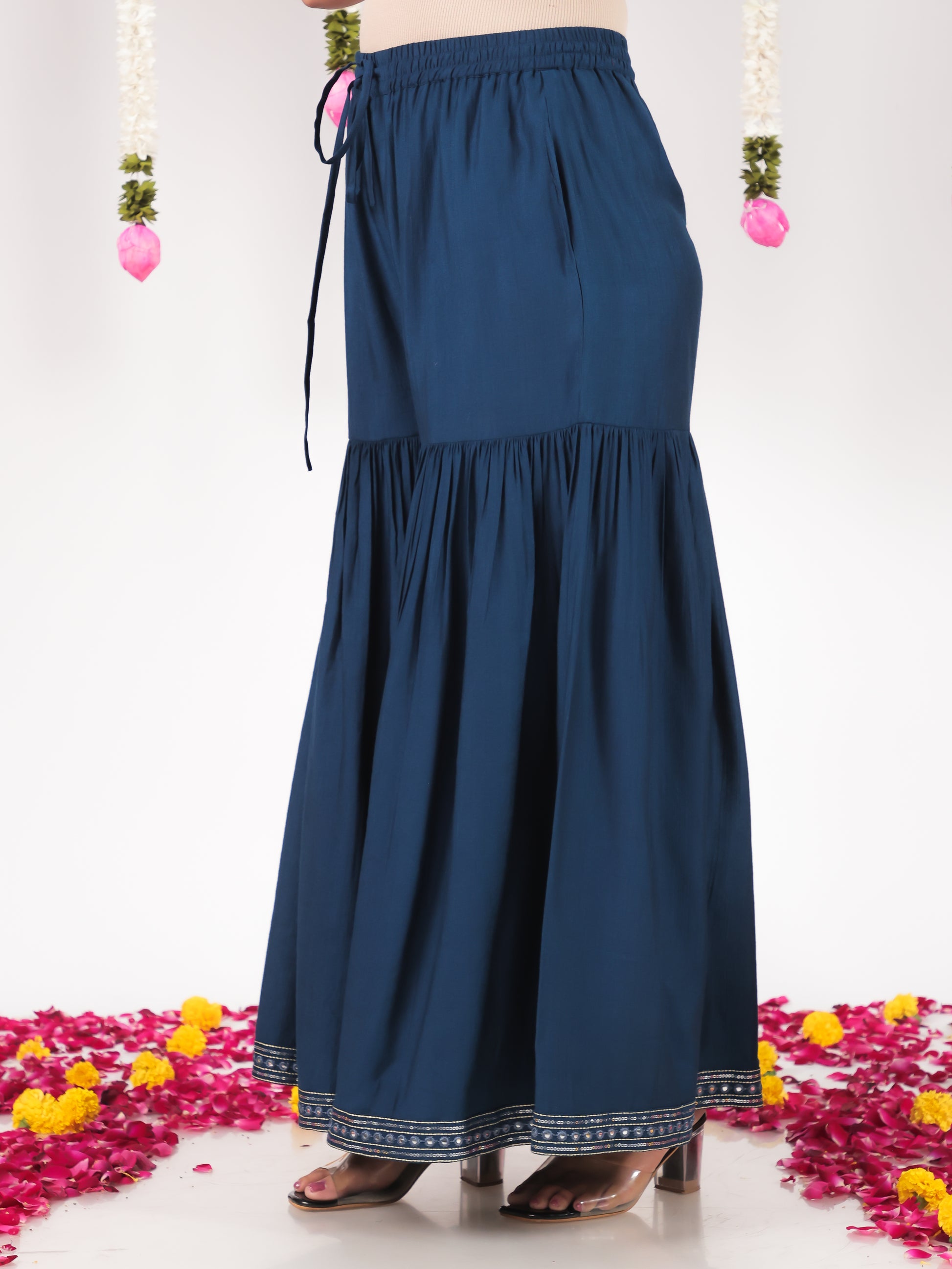 These Blue trouser crafted from breathable Vertigan combine comfort and style. The Solid pattern adds a modern twist, while pockets make them practical for daily wear. Ideal for casual outings or workdays, they pair effortlessly with kurtas, tops, or tunics. Keep them looking fresh with minimal care and enjoy their all-day ease.