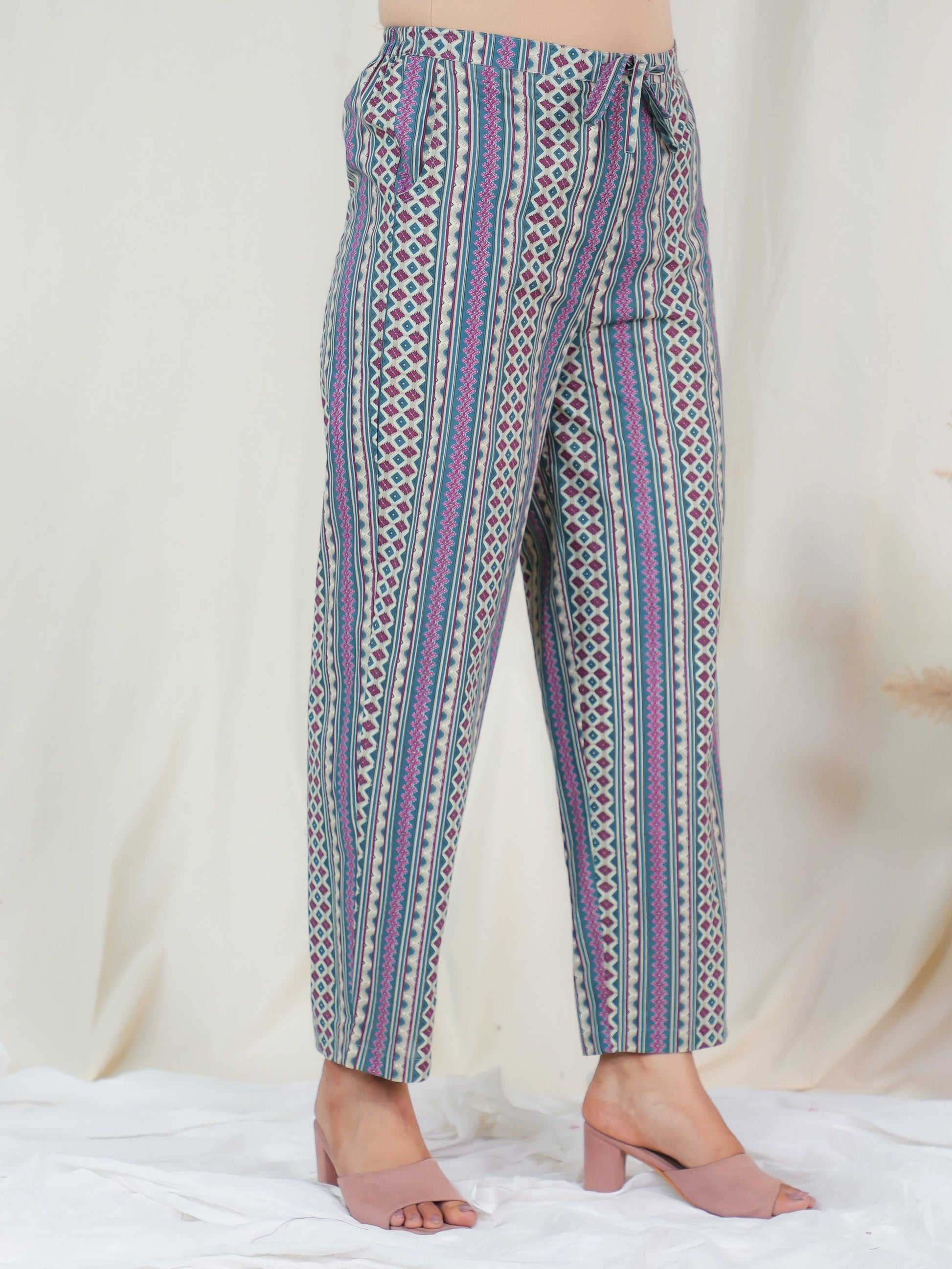 Crafted from Soft Cotton, these Blue bottoms are designed for all-day comfort. The chic Striped work adds flair, and pockets provide convenience for carrying essentials. Great for casual days, shopping trips, or work, these bottoms pair effortlessly with your favourite tops. Their durable design and easy maintenance make them a practical staple.