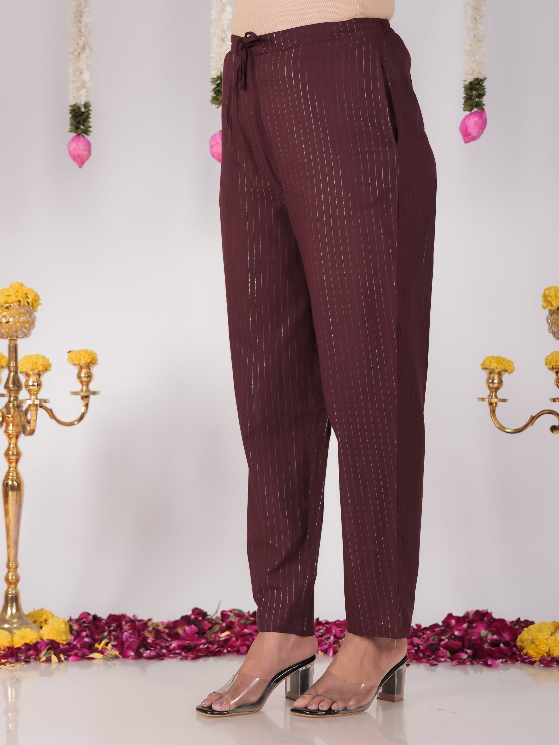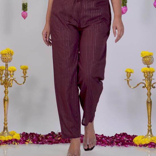 Unwind in the comforting charm of this lurex cotton trousers in a graceful brown tone, Meant for relaxed days and graceful moments, it pairs beautifully with your favorite everyday accessories. Wear it when you want to feel put-together without the fuss.