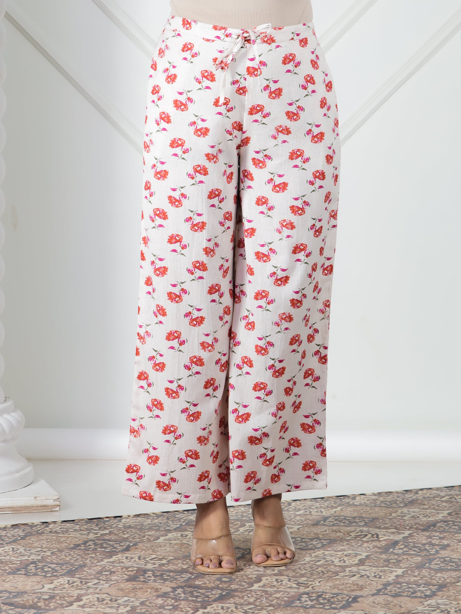 Upgrade your wardrobe with these Cream bottoms made from lightweight Linen Cotton. The Floral accents bring subtle charm, while pockets make them practical for all-day wear. Perfect for pairing with ethnic kurtas or western blouses, these bottoms are a go-to choice for comfort and style. Easy care ensures they stay fresh season after season.