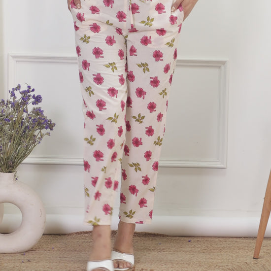 These Cream trouser crafted from breathable Soft Cotton combine comfort and style. The Floral pattern adds a modern twist, while pockets make them practical for daily wear. Ideal for casual outings or workdays, they pair effortlessly with kurtas, tops, or tunics. Keep them looking fresh with minimal care and enjoy their all-day ease.
