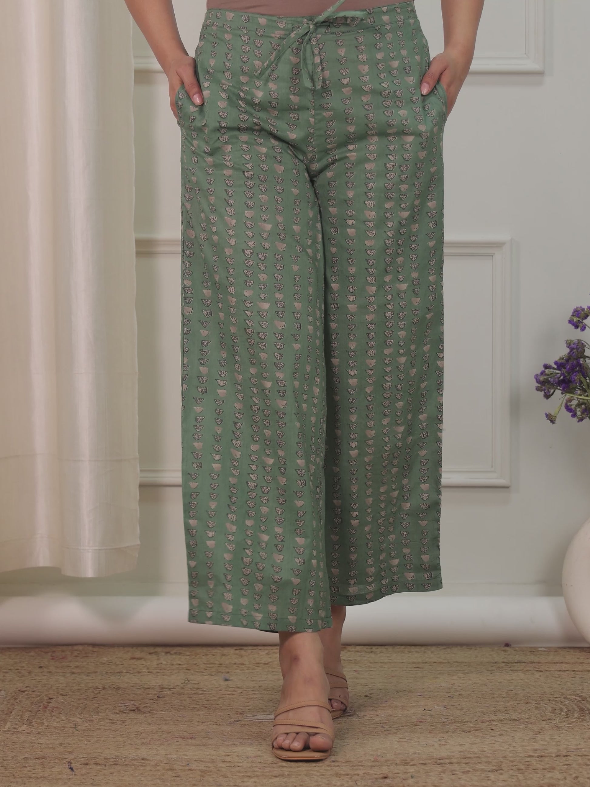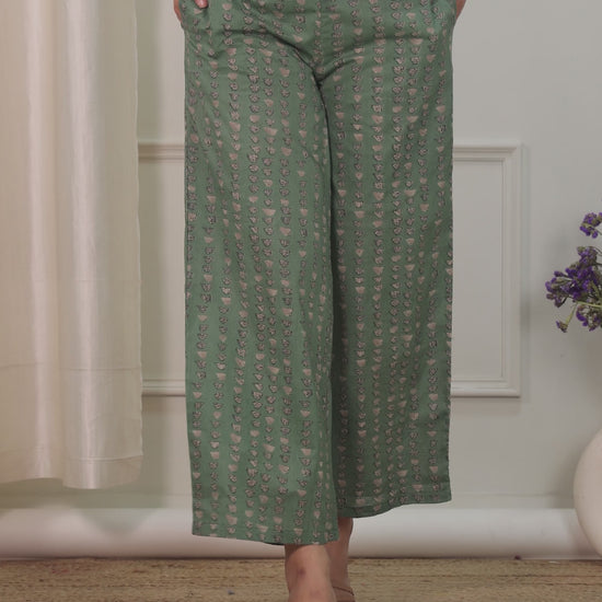 Soft Cotton Geometric Green Palazzo