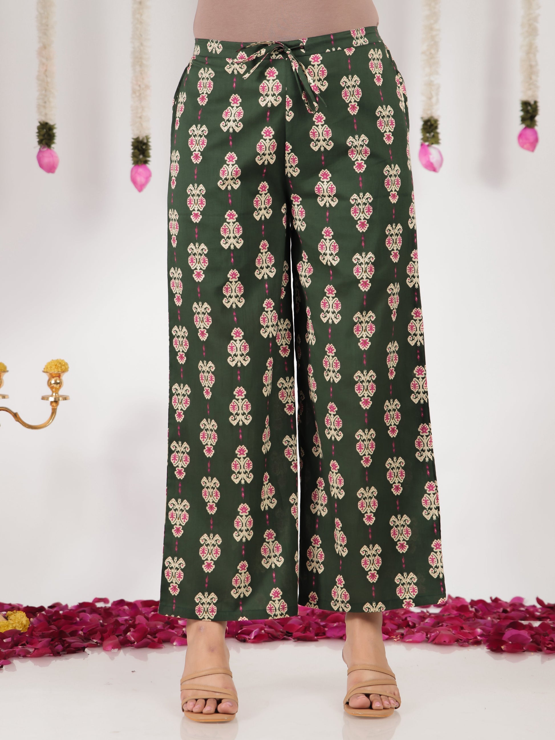 These Green trouser crafted from breathable Soft Cotton combine comfort and style. The Ikat pattern adds a modern twist, while pockets make them practical for daily wear. Ideal for casual outings or workdays, they pair effortlessly with kurtas, tops, or tunics. Keep them looking fresh with minimal care and enjoy their all-day ease.