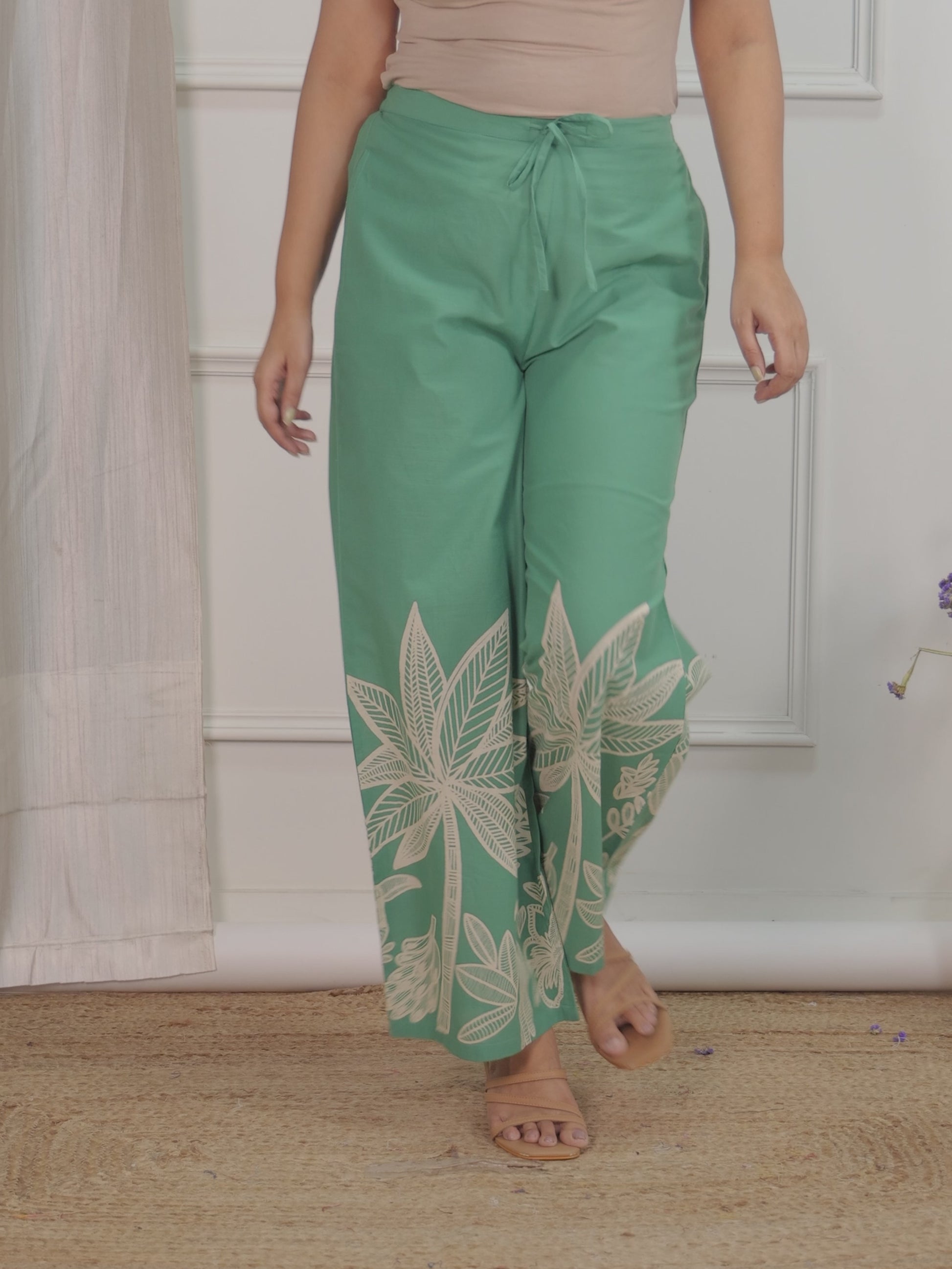 Upgrade your wardrobe with these Green bottoms made from lightweight Soft Cotton. The Placement Print accents bring subtle charm, while pockets make them practical for all-day wear. Perfect for pairing with ethnic kurtas or western blouses, these bottoms are a go-to choice for comfort and style. Easy care ensures they stay fresh season after season.