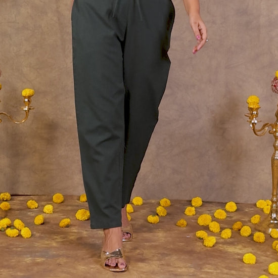 Linen Cotton Solid Green Tapered Trousers