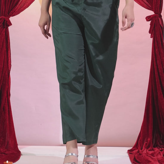 Poly Silk Solid Green Straight Trousers