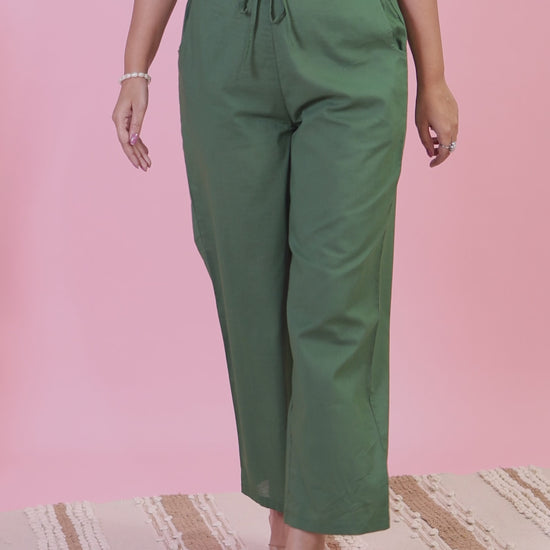 Soft Cotton Solid Green Straight Trousers