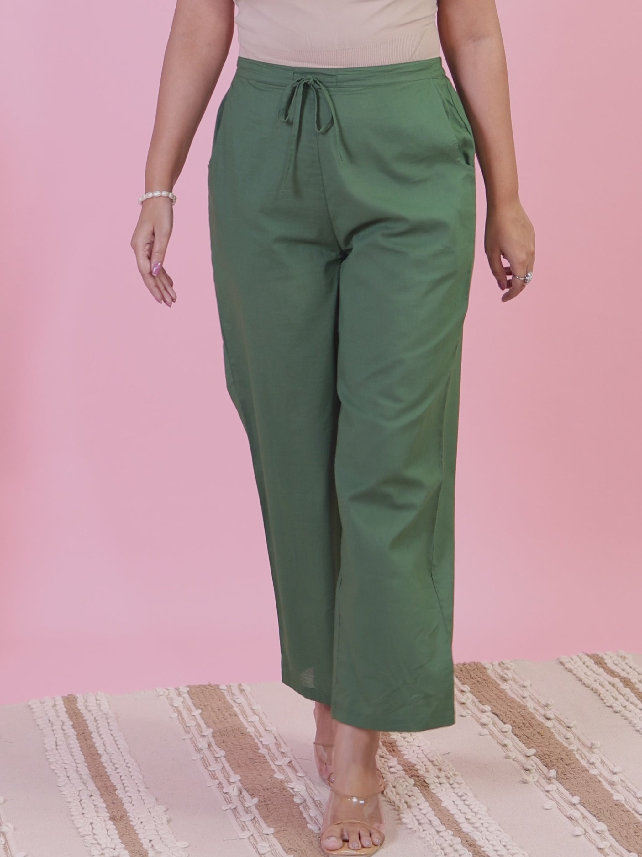 Upgrade your wardrobe with these Green bottoms made from lightweight Soft Cotton. The Solid accents bring subtle charm, while pockets make them practical for all-day wear. Perfect for pairing with ethnic kurtas or western blouses, these bottoms are a go-to choice for comfort and style. Easy care ensures they stay fresh season after season.