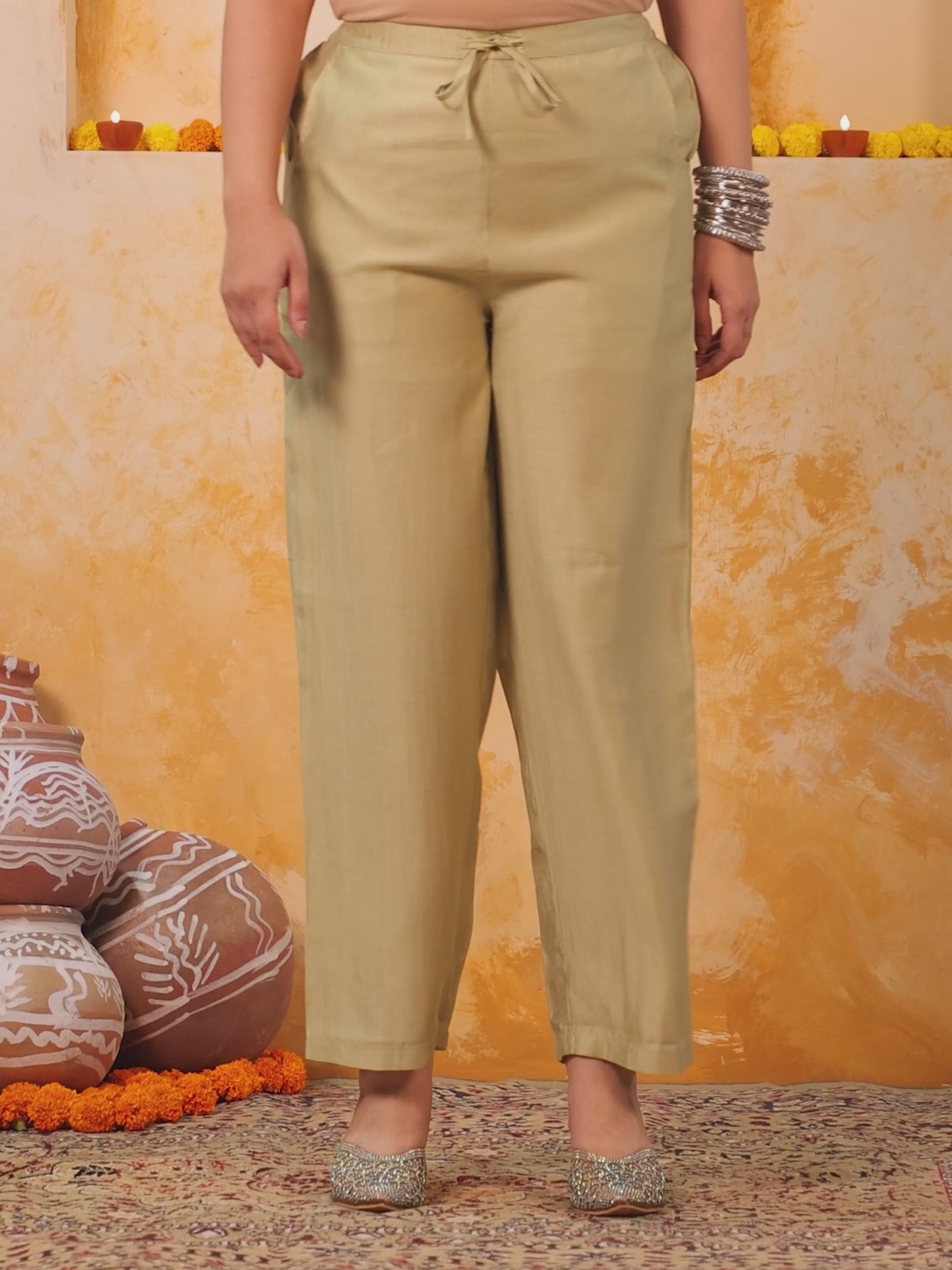 Vertigan Solid Green Straight Trousers